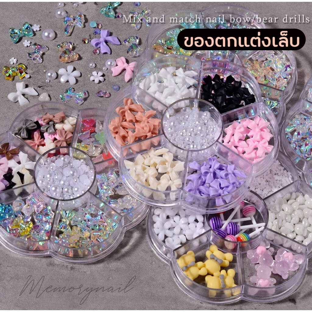( ของแต่งเล็บ 7 แบบ ) เพชรติดเล็บ มุข หินสี ดอกไม้ ดาว ผีเสื้อติดเล็บ โบว์ เพชรหัวใจ อะไหล่แต่งเล็บ