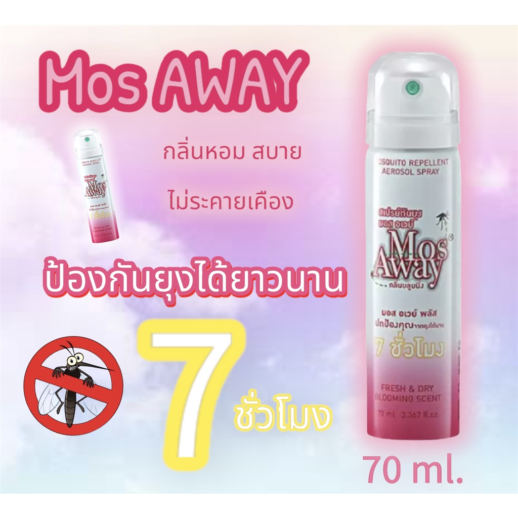(พร้อมส่ง )NEW สเปรย์กันยุง มอส อะเวย์ Mos away 70 ml. กลิ่นบลูมมิ่ง