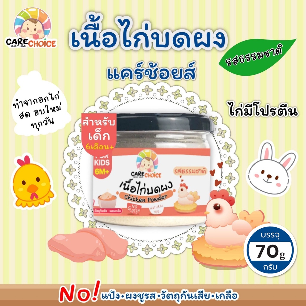C042 เนื้อไก่บด 100% แบรนด์ แคร์ช้อยส์ อาหารทารก (6 เดือน+) 70 กรัม เนื้อสัตว์บดผง