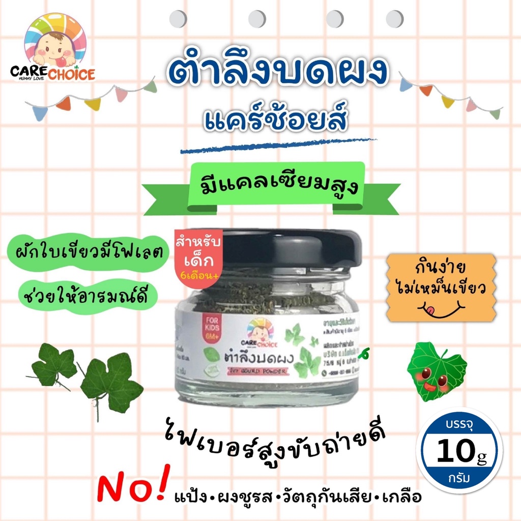 C061 แคร์ช้อยส์ ตำลึงบดผง ขนาด 10 กรัม อาหารเสริมสำหรับเด็ก 6 เดือนขึ้นไป อาหารเด็ก