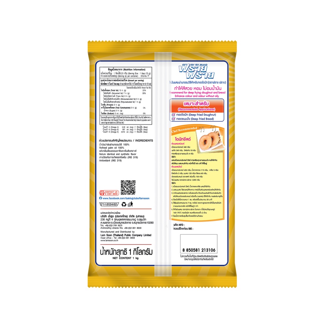 ฟราย ฟราย เนยขาว 1 กก. X 2 ถุง Fry Fry Shortening 1 kg x 2 Bags