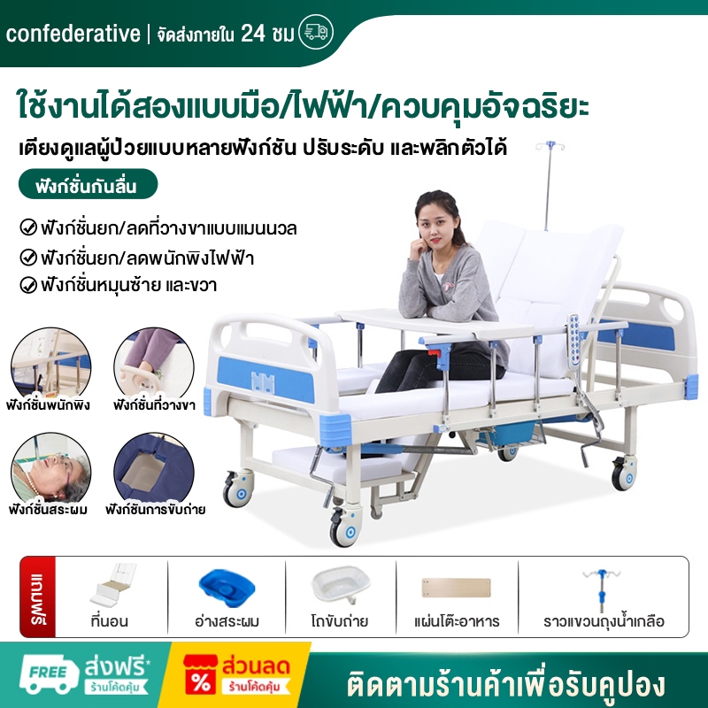 【จัดส่งในวันเดียวกัน】เตียงผู้ป่วย ปรับได้ไฟฟ้า เตียงยกปรับระดับได้ด้วยมือสำหรับผู้ป่วยอัมพาตและเตียงฟื้นฟูสมรรถภาพผู้สูง