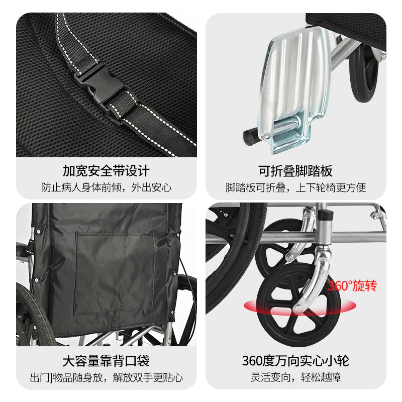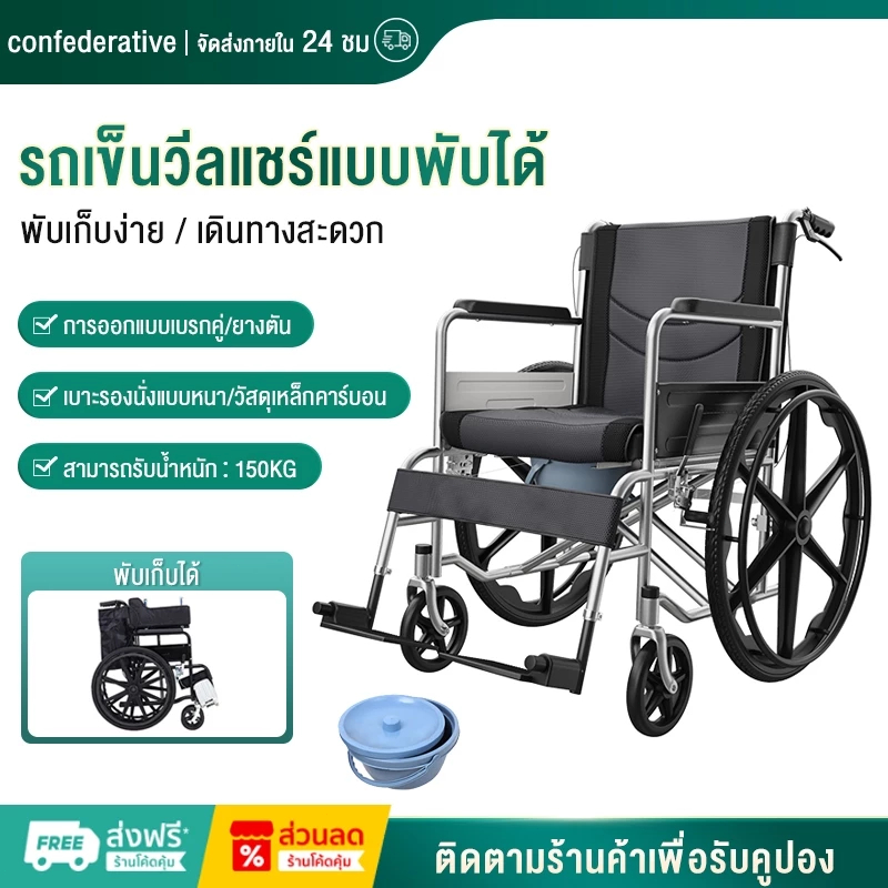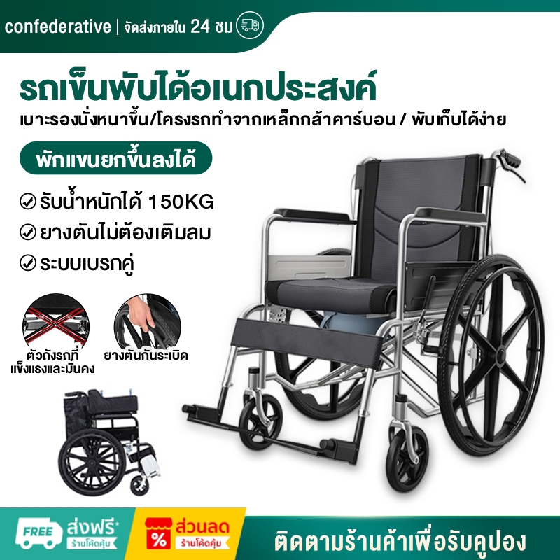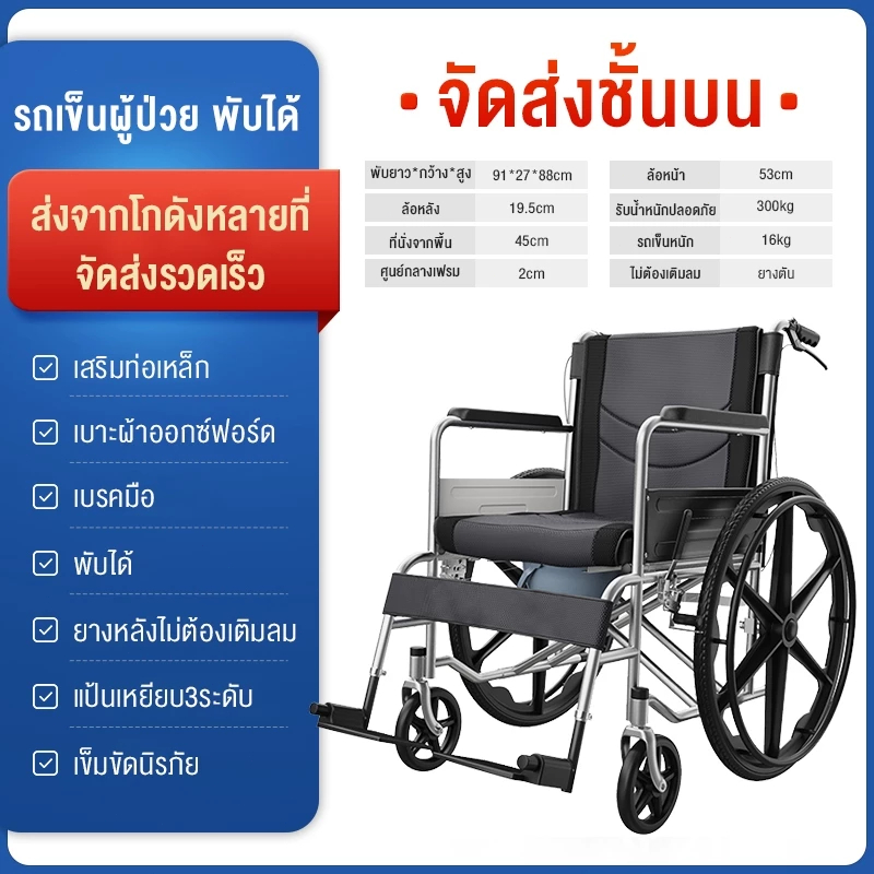 รถเข็นผู้ป่วย Wheelchair วีลแชร์ พับได้ เก้าอี้รถเข็นผู้สูงอายุ เก้าอี้รถเข็นผู้ป่วยสามารถปรับเอนได้ เก้าอี้รถเข็น