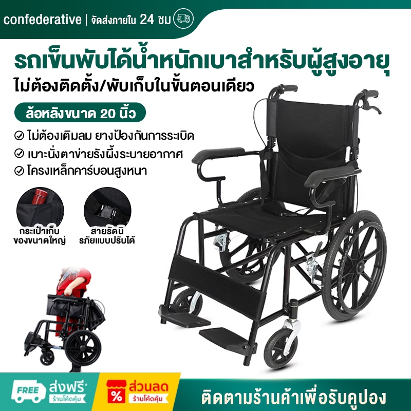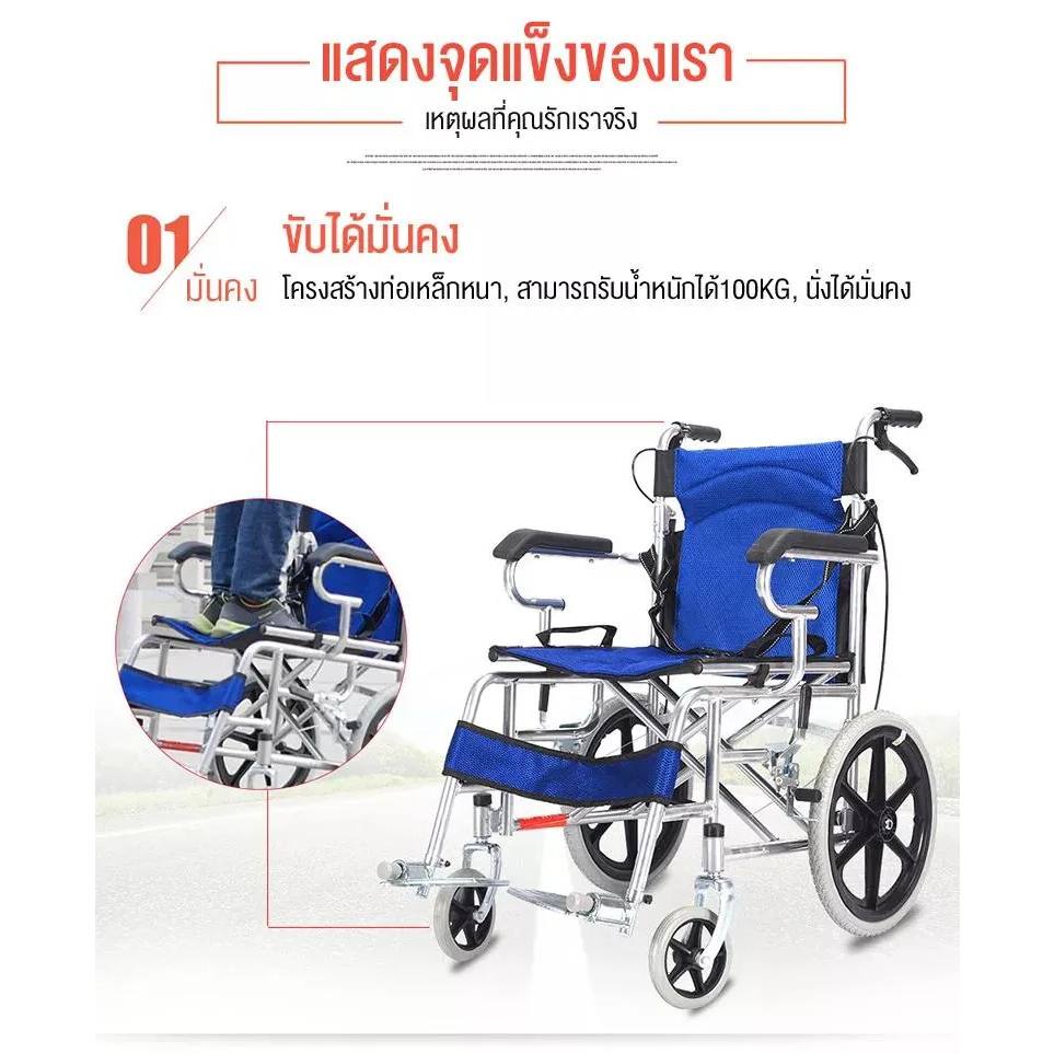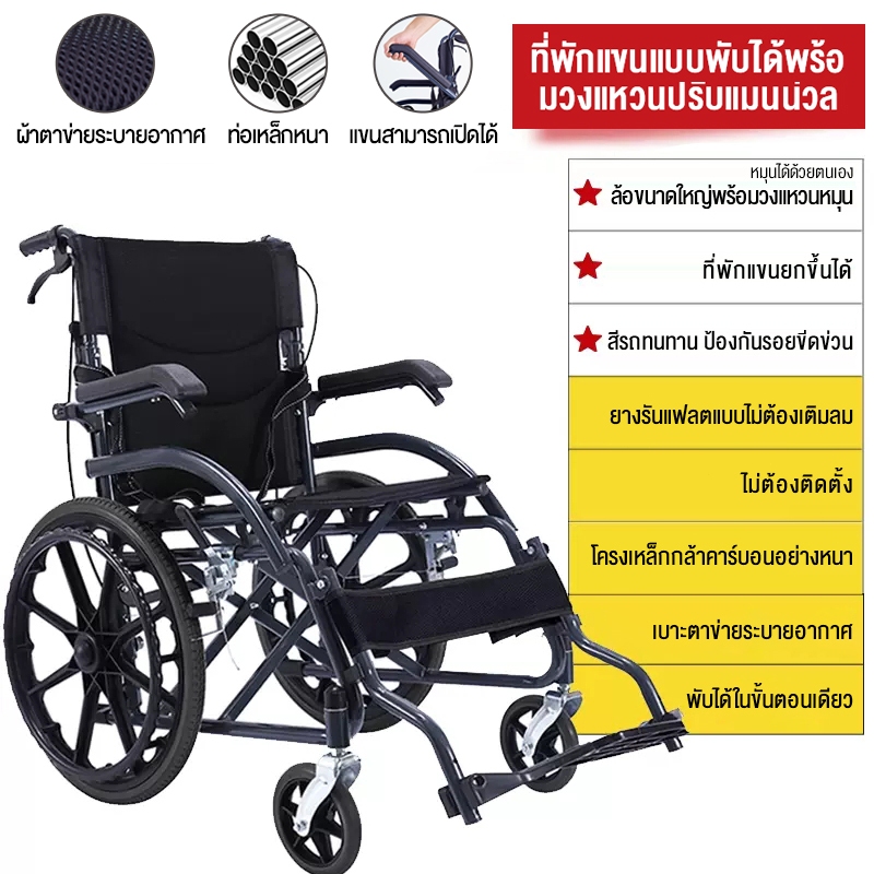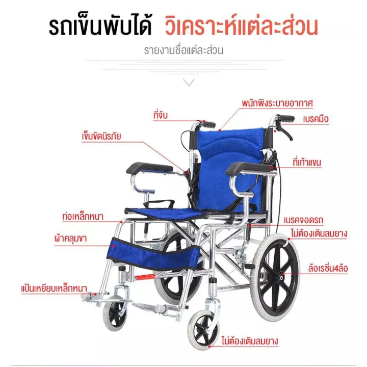 วีลแชร์ wheelchair รถเข็นคนแก่ รถเข็นผู้ป่วย พับได้ น้ำหนักเบา กะทัดรัด ล้อ 16 นิ้ว มีเบรค หน้า,หลัง 4 จุด วิลแชร์