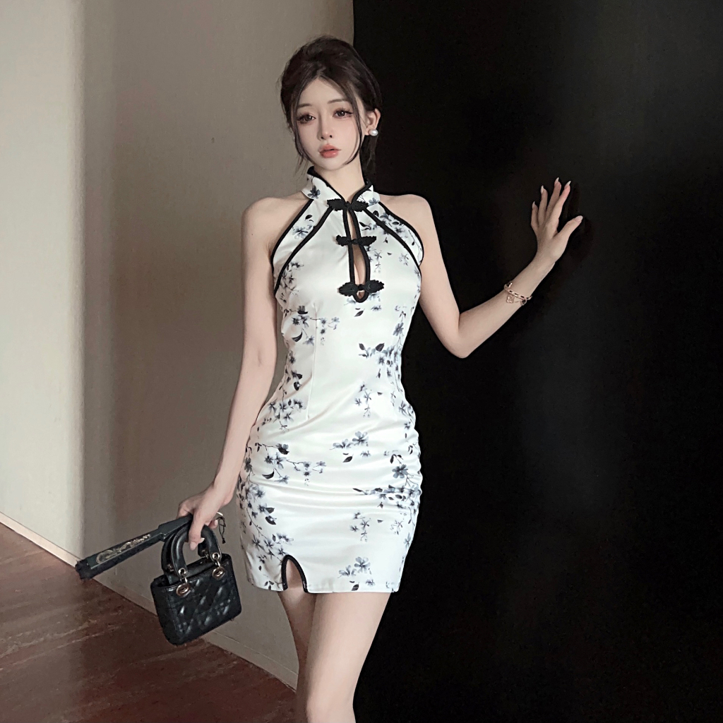 U Gonna S ชุดปรับปรุง Cheongsam โมเดิร์นแขนกุดเซ็กซี่เหนือเข่าด้านข้าง Slit ดอกไม้จีนเอวสูงแฟชั่นหรูหรา Bodycon 2024 ดีไซน์ใหม่ยืด ชุดคลุมเสื้อขนาดใหญ่ Plus Size