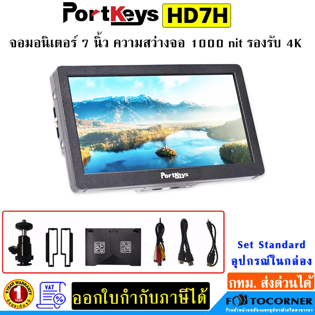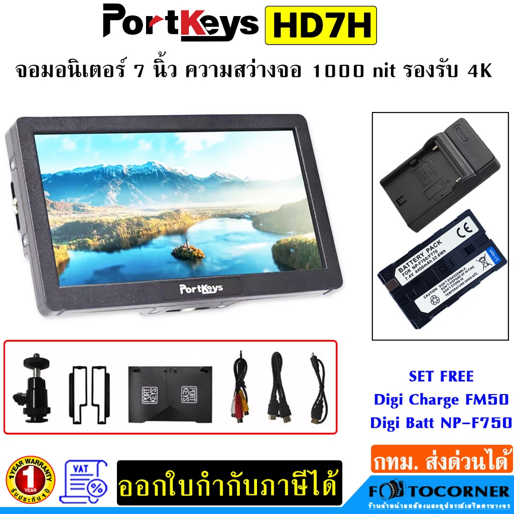 Portkeys HD7H จอมอนิเตอร์ 7 นิ้ว ความสว่างจอ 1000nit มีลำโพงในตัว รองรับ 4K HDMI รับประกัน 1 ปี