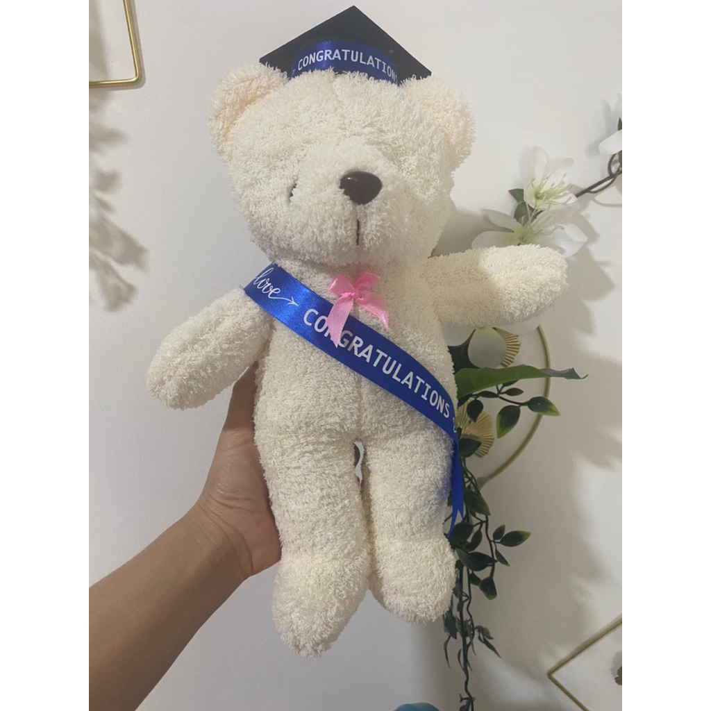 🔥ตุ๊กตาบัณฑิต 🎓มีสายสะพาย Congratulations พร้อมหมวก (หมียืน 12 นิ้ว)