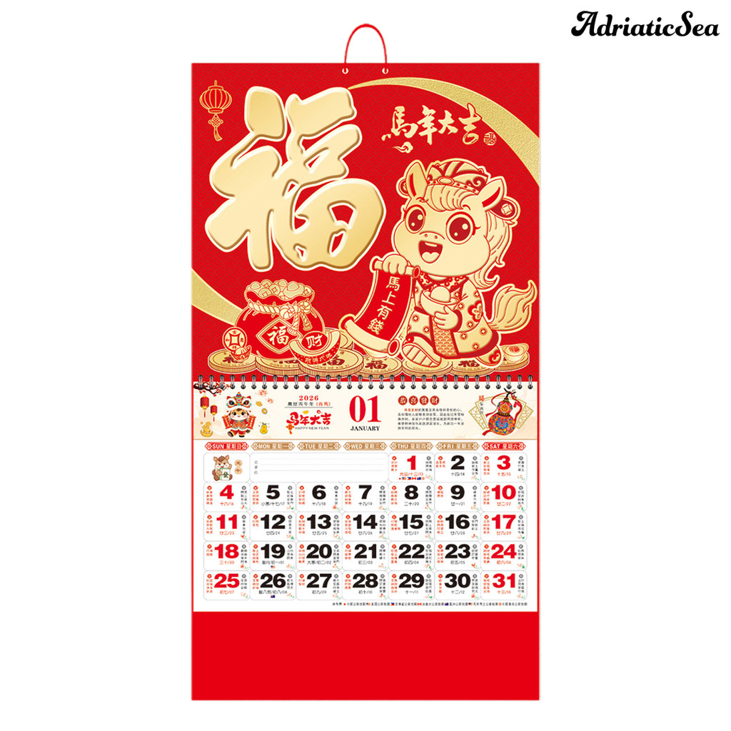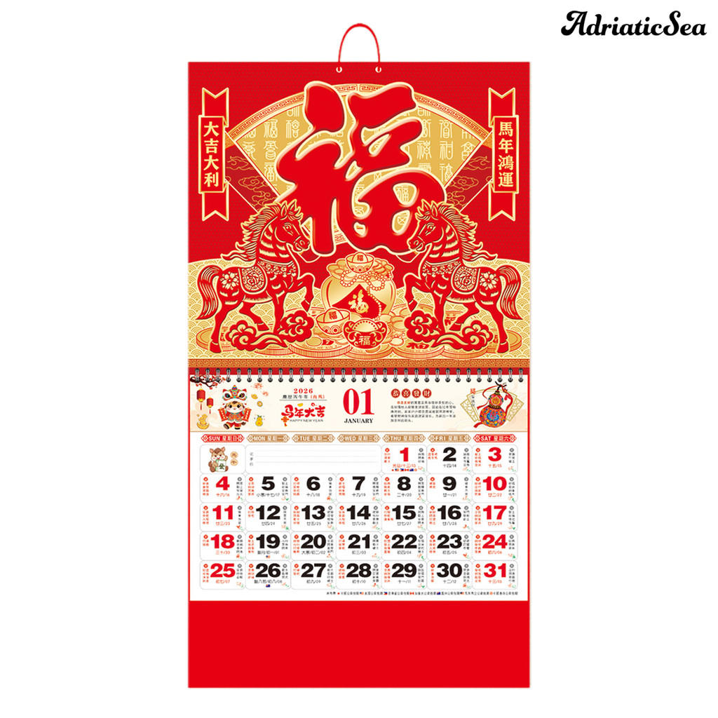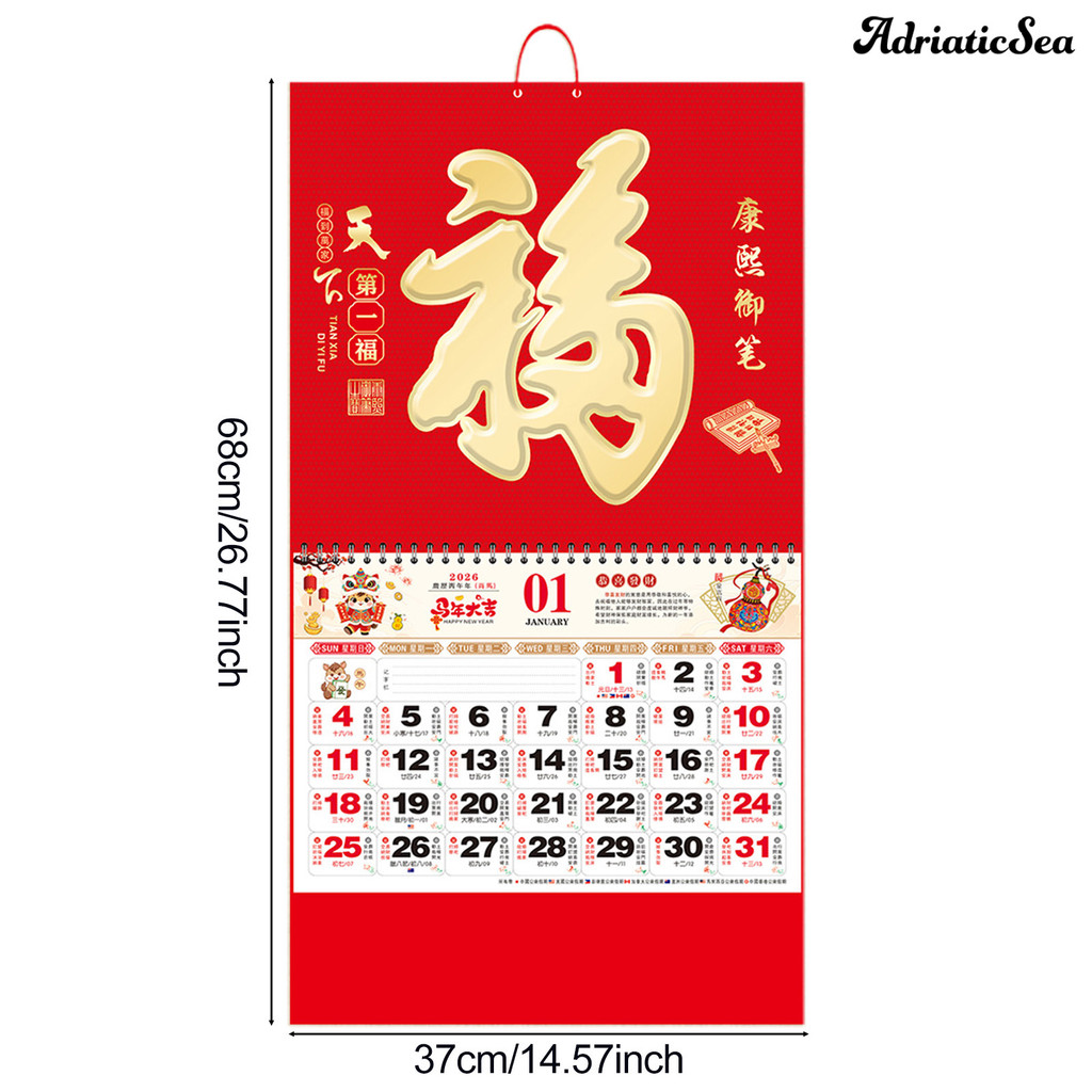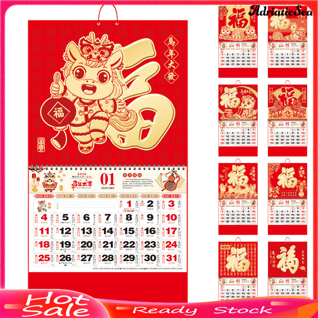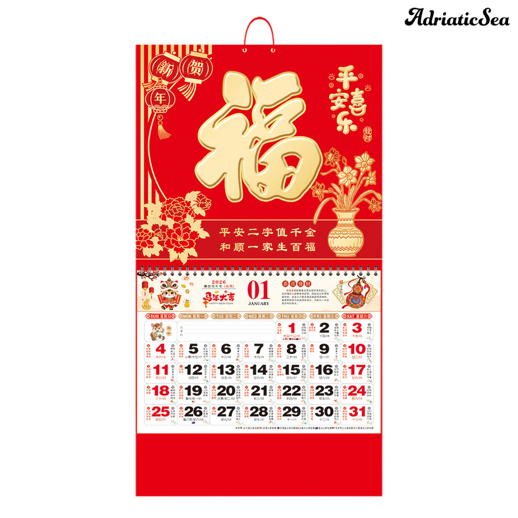 [COD]☃2026 ปฏิทินติดผนังปีเสือปฏิทินแขวนจันทรคติปฏิทินรายเดือนสําหรับบ้านร้านอาหารสํานักงานโรงเรียนจีน
