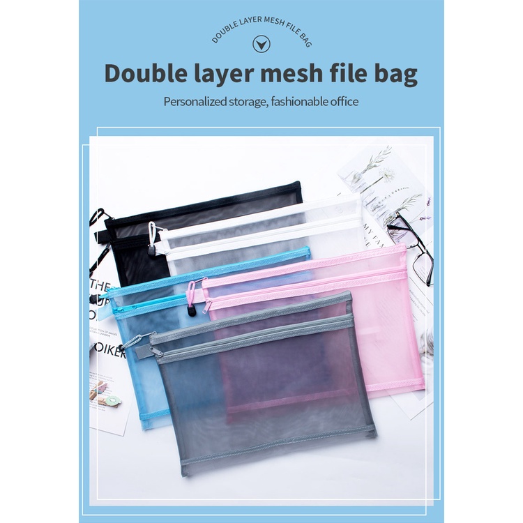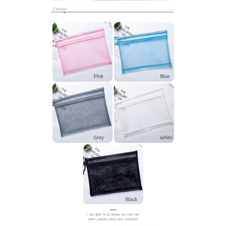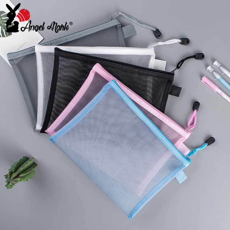 Angel Mark ถุงตาข่ายใส มีซิป ขนาด A4 A5 A6 แบบพกพา ชั้นเดียว สําหรับใส่เครื่องเขียน นักเรียน สํานักงาน 1 ชิ้น