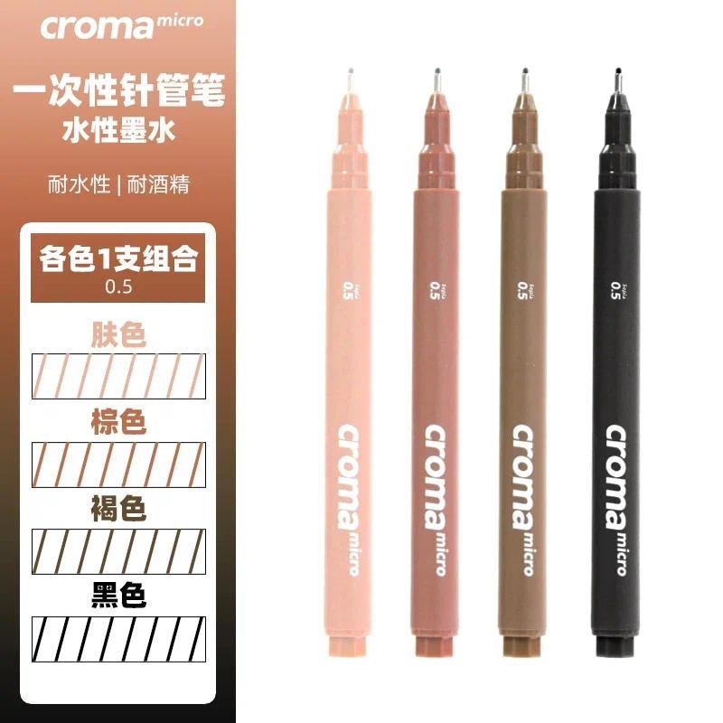 Croma Micro Fineliner Art ปากกาประดิษฐ์ตัวอักษรชุดเข็มนุ่มเคล็ดลับศิลปินวาด Sketching สีดํา/สีน้ําตาล/ผิว