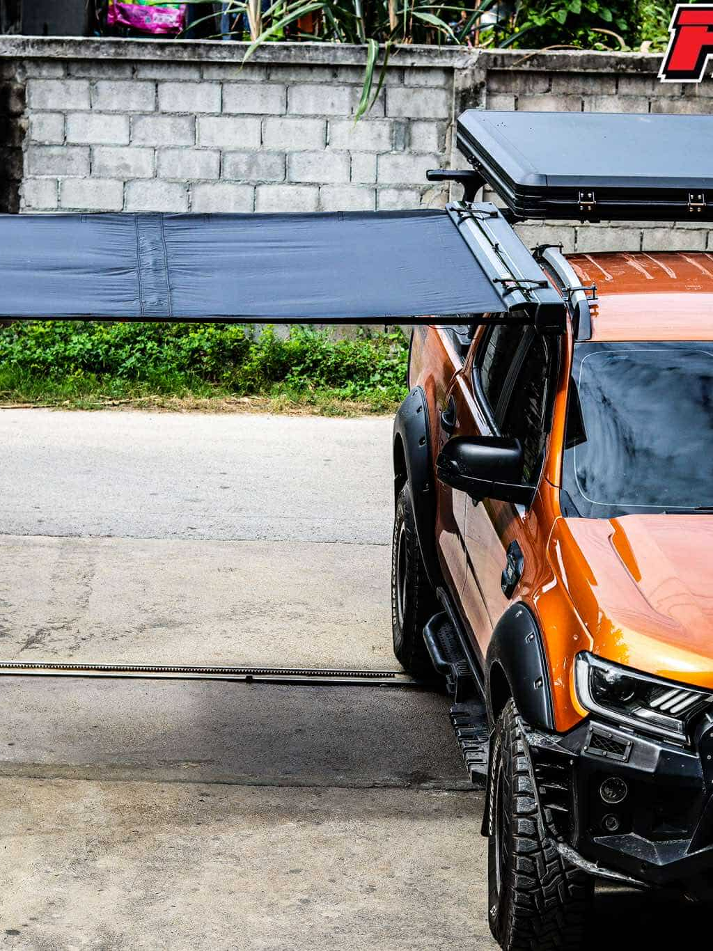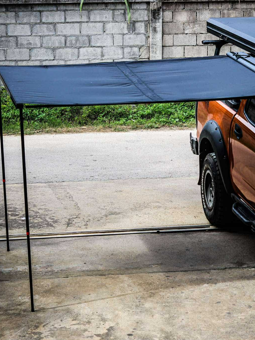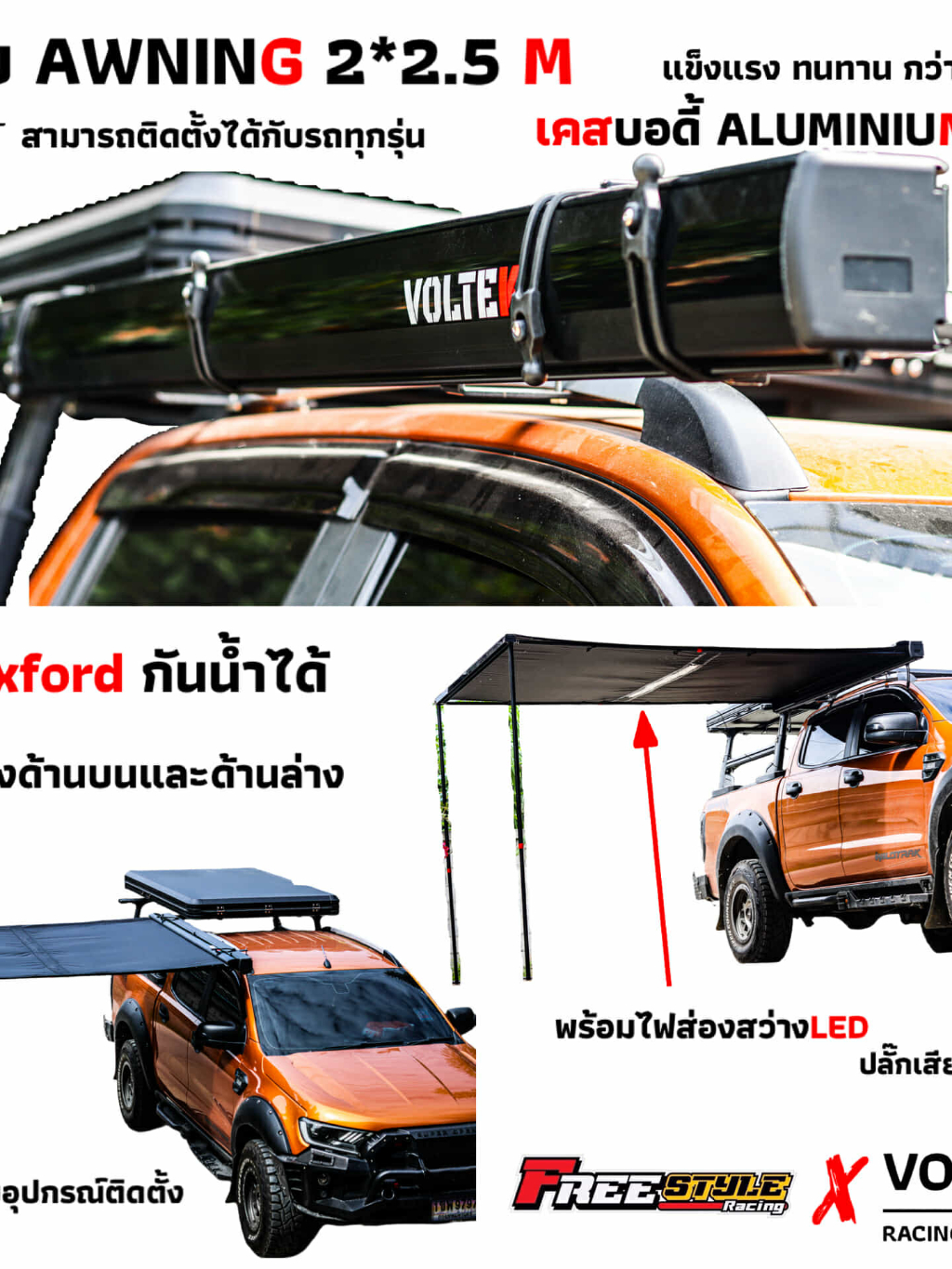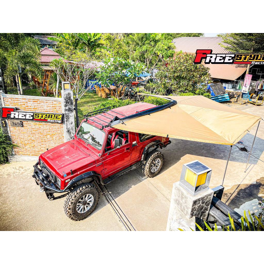 AWNING ผ้าใบข้างรถ ขนาด 2*2.5 M สีดำทั้งบนและด้านล่าง พร้อมไฟLED แข็งแรง ผ้ากันน้ำได้ไม่มีซึม