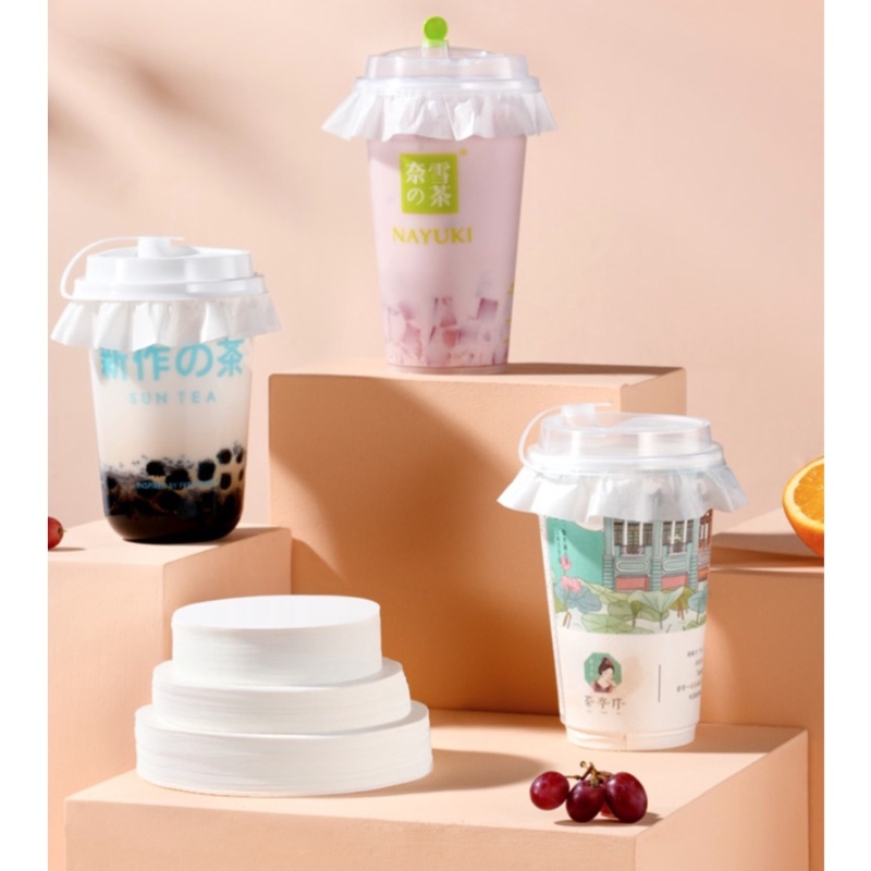 500ชิ้น กระดาษกันรั่ว ฝาครอบแก้ว สามารถเจาะกระดาษฝาขวดด้วยหลอด