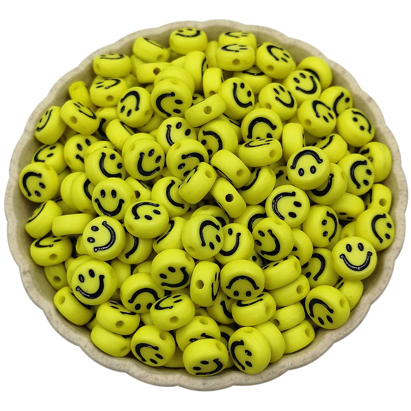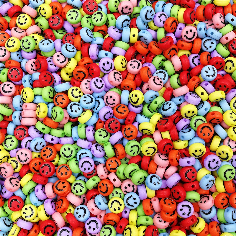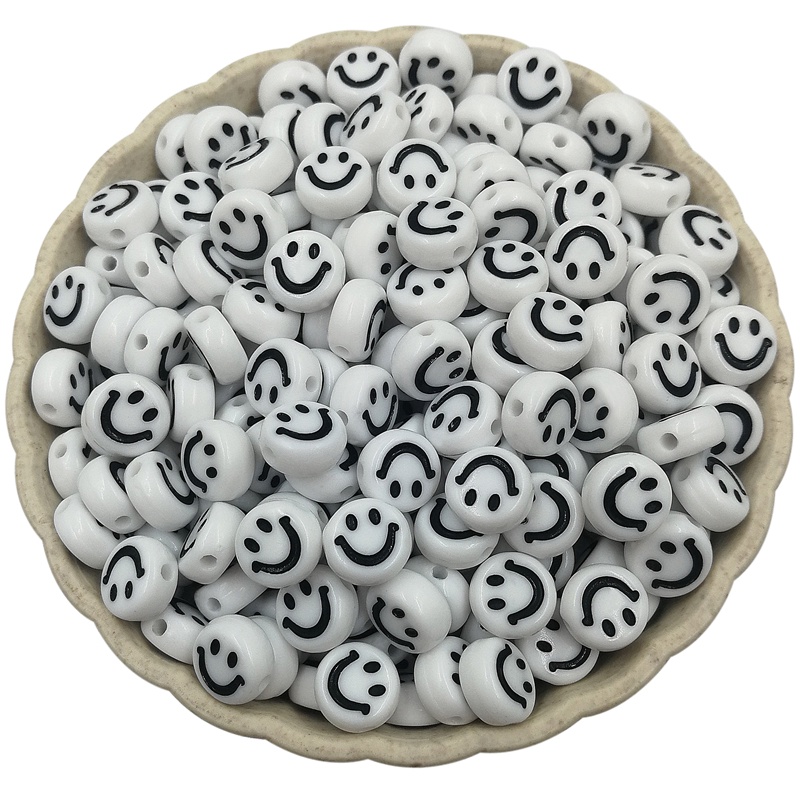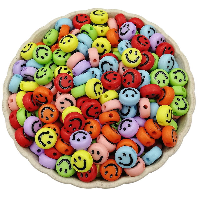 ลูกปัดอะคริลิค ทรงกลม รูปหน้ายิ้ม ขนาด 7 มม. สําหรับทําเครื่องประดับ DIY จํานวน 100 ชิ้น