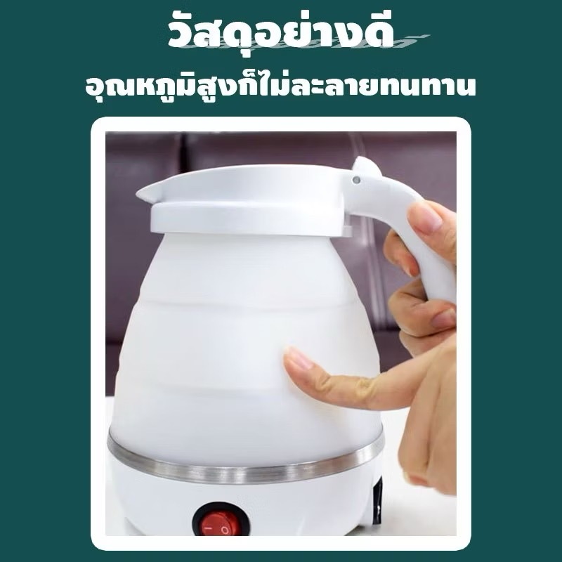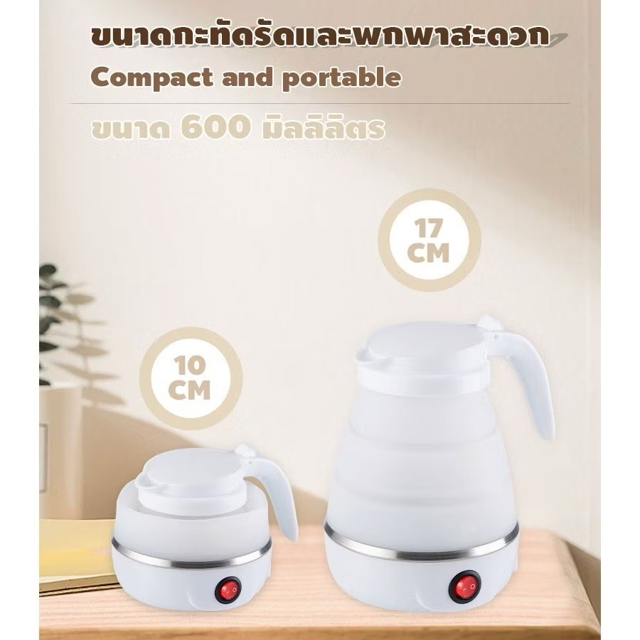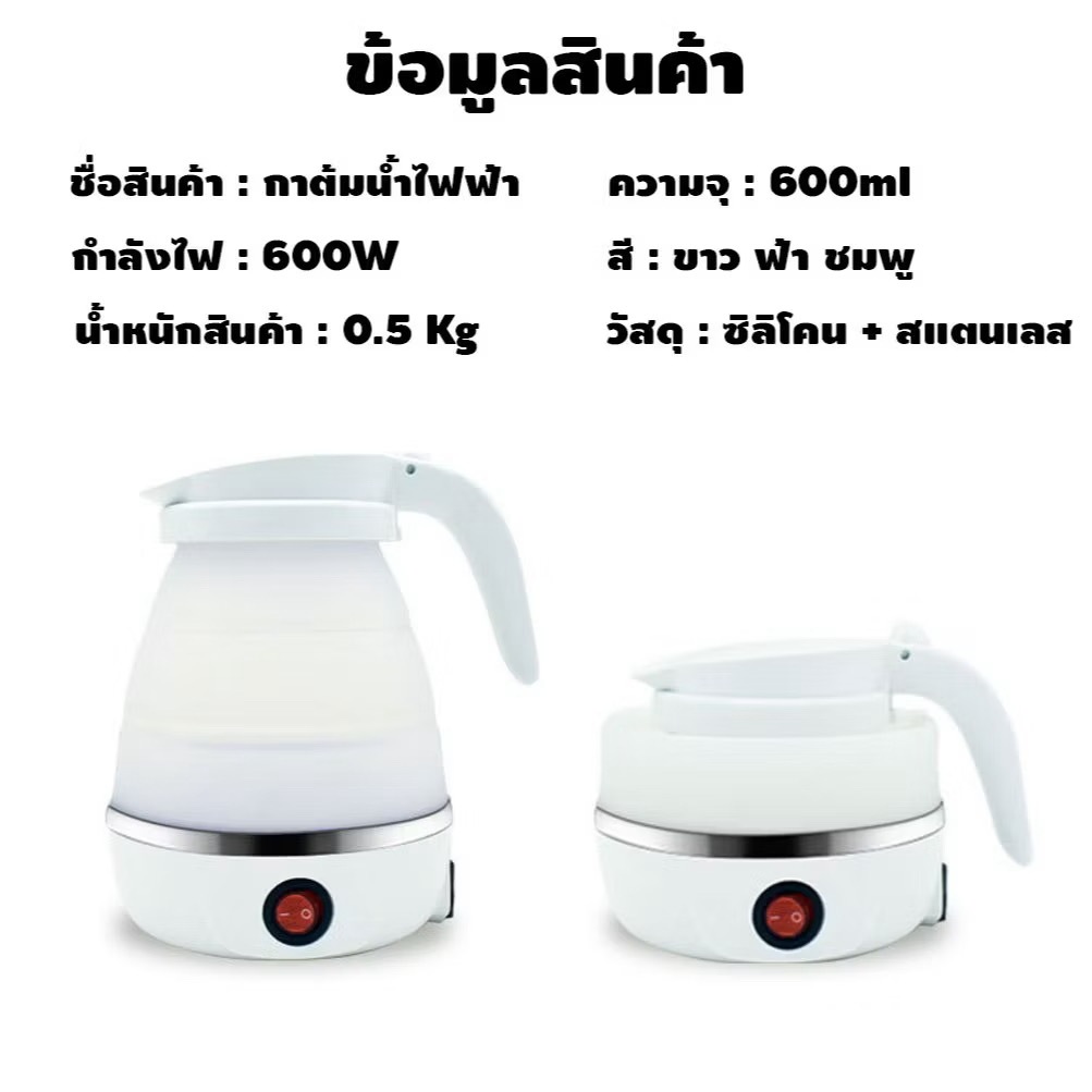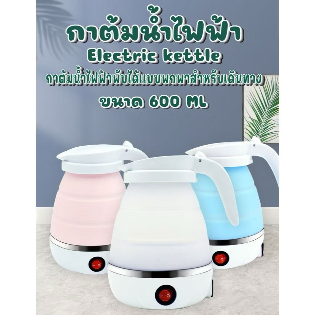 กาต้มน้ำไฟฟ้า แบบพับได้ กาต้มน้ำร้อนแบบพกพา ขนาด 600 มล. วัสดุสแตนเลสและซิลิโคน