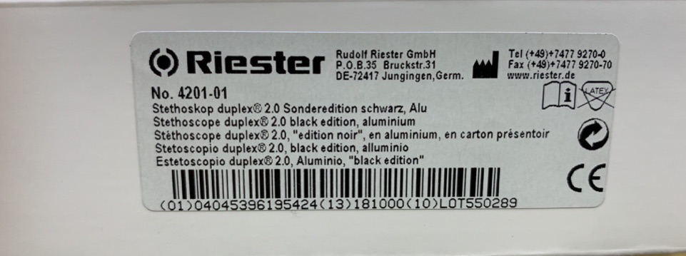หูฟังแพทย์ ผลิตภัณฑ์ประเทศเยอรมัน วัสดุอลูมิเนียม สีดำด้าน ยี่ห้อ Riester duplex