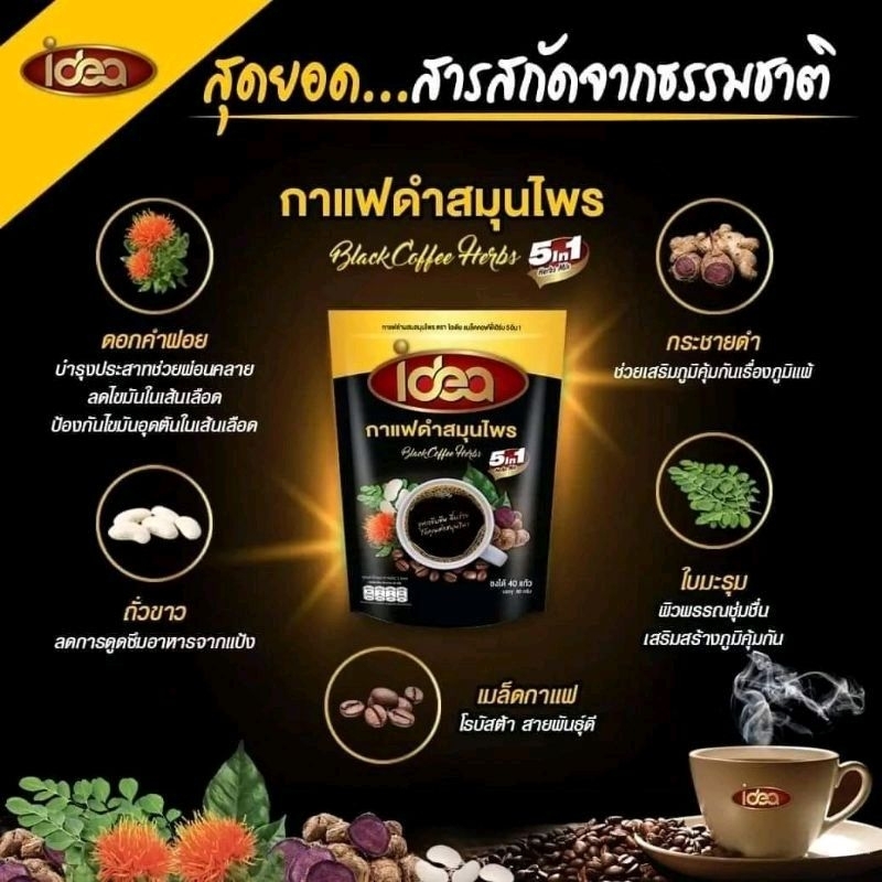 ✅กาแฟดำสมุนไพรไอเดีย▶️Idea Black Coffee Herbs 5in1 กาแฟดำ⛔ไม่มีน้ำตาล