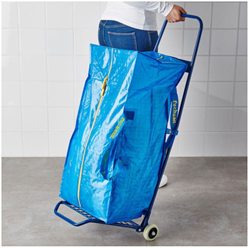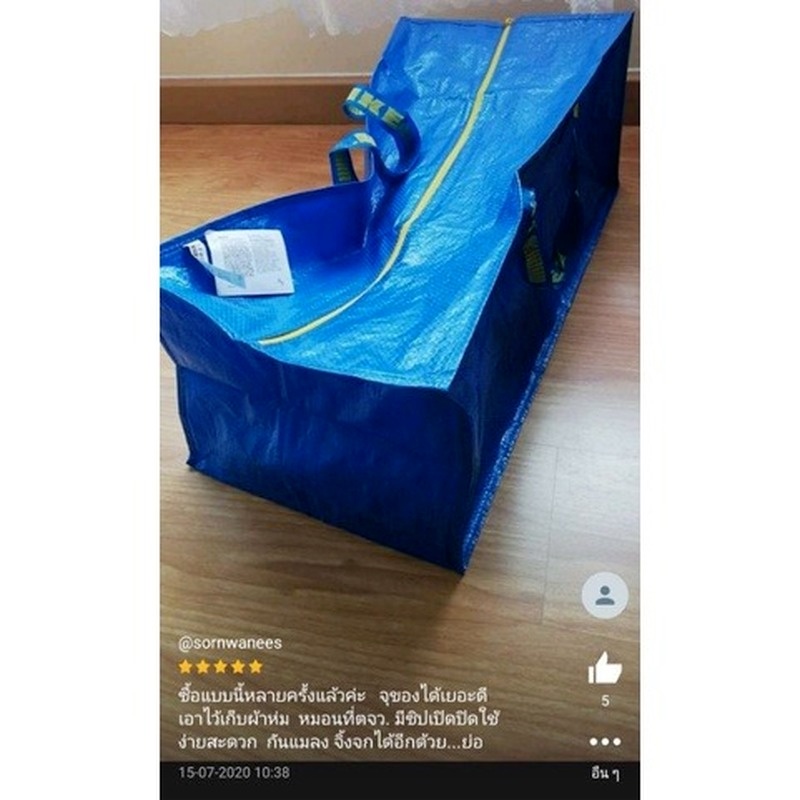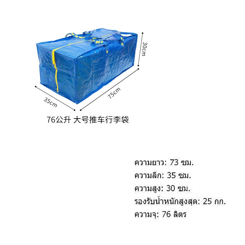 IKEA ถุง ถุงมีซิบ ฟ้า XL 73x35x30 ซม ถุงกระสอบ,ถุงหิ้ว ถุงอิเกีย ฟรัคต้ากระเป๋าพลาสติก, น้ำเงิน 76 ลิตร ซิปเหลือง
