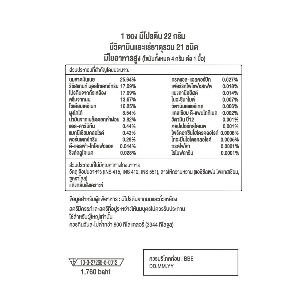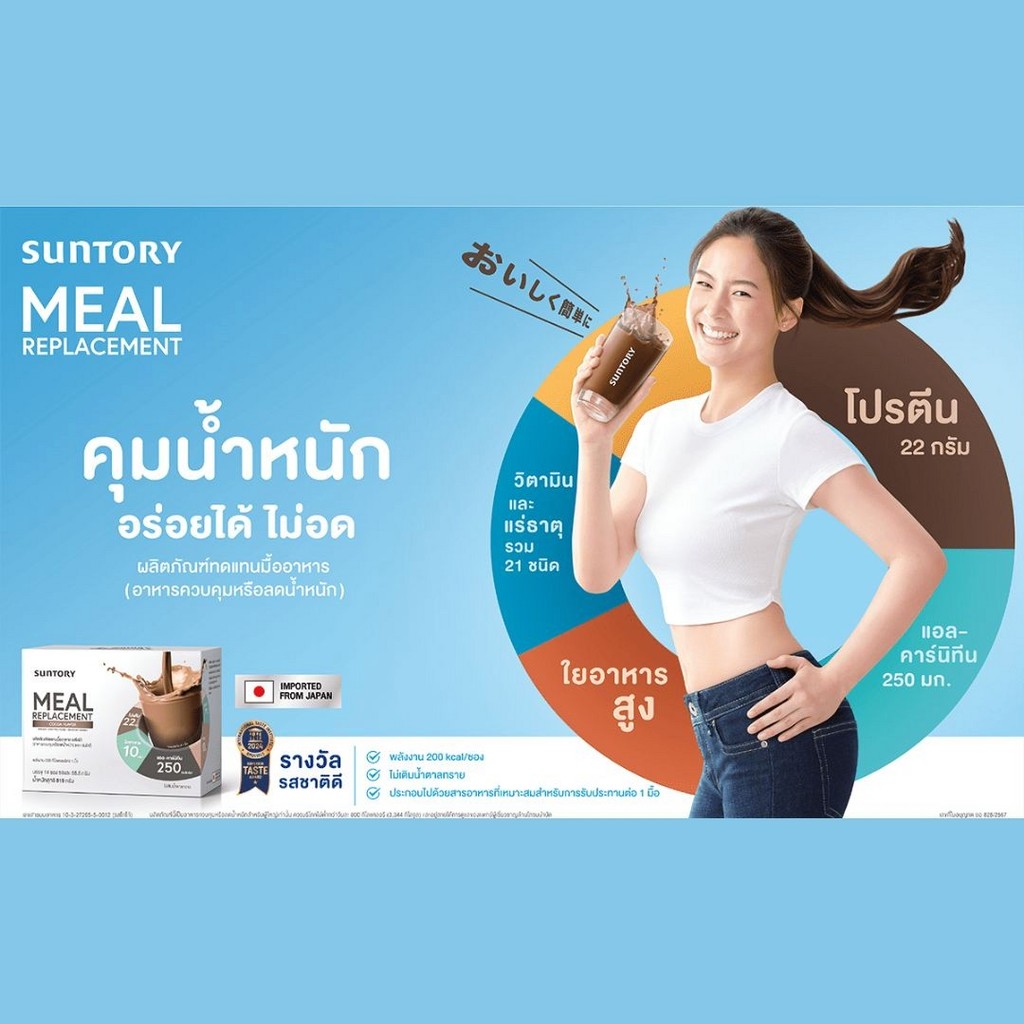 Suntory ผลิตภัณฑ์ทดแทนมื้ออาหาร รสโกโก้ ขนาด ขนาด 819 g. [บรรจุ 14 ซอง / 1 ซอง=58.5 g.] (04830)
