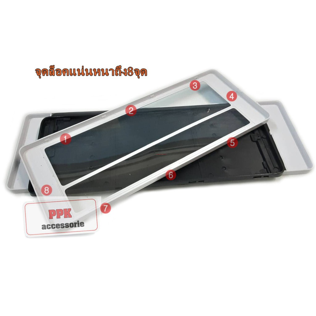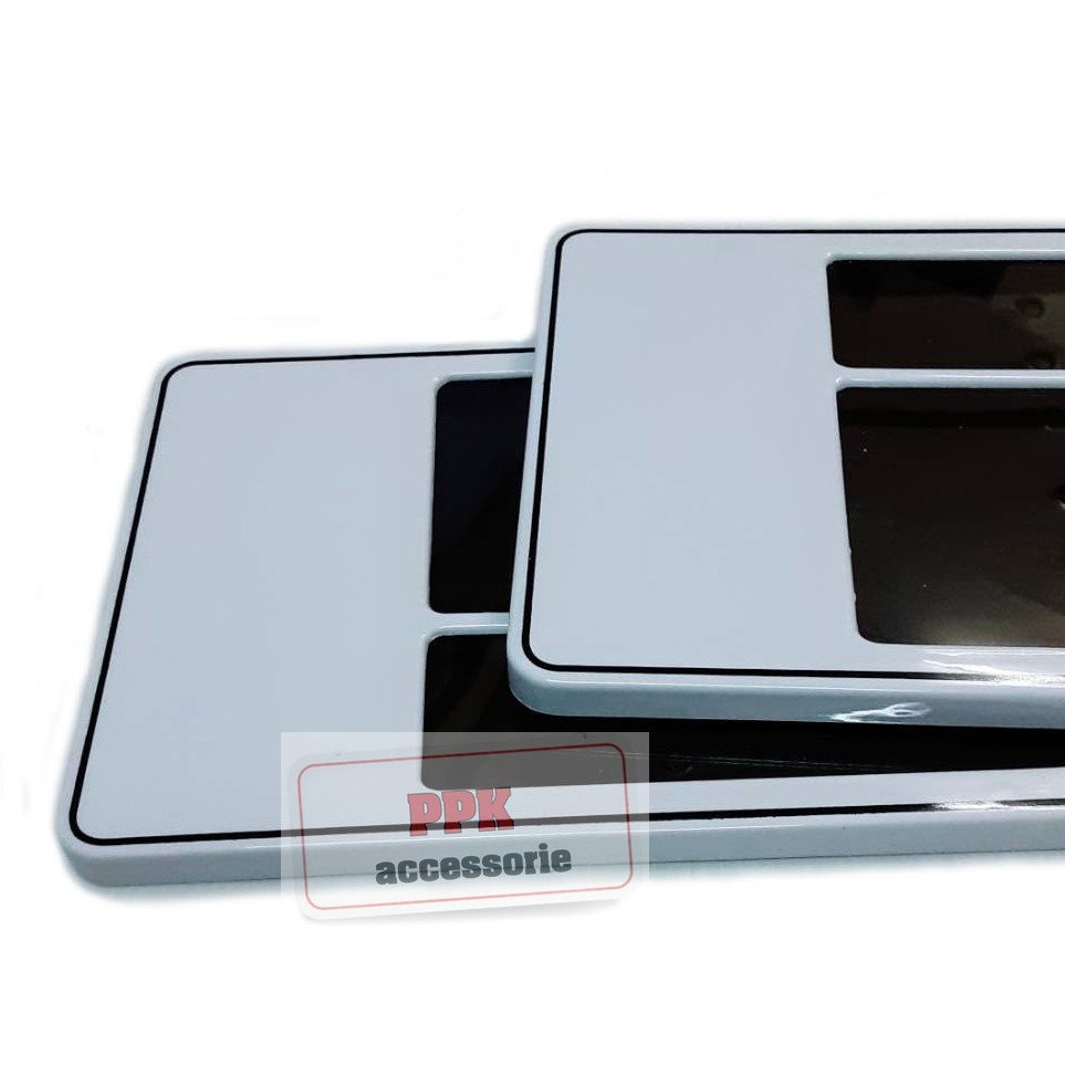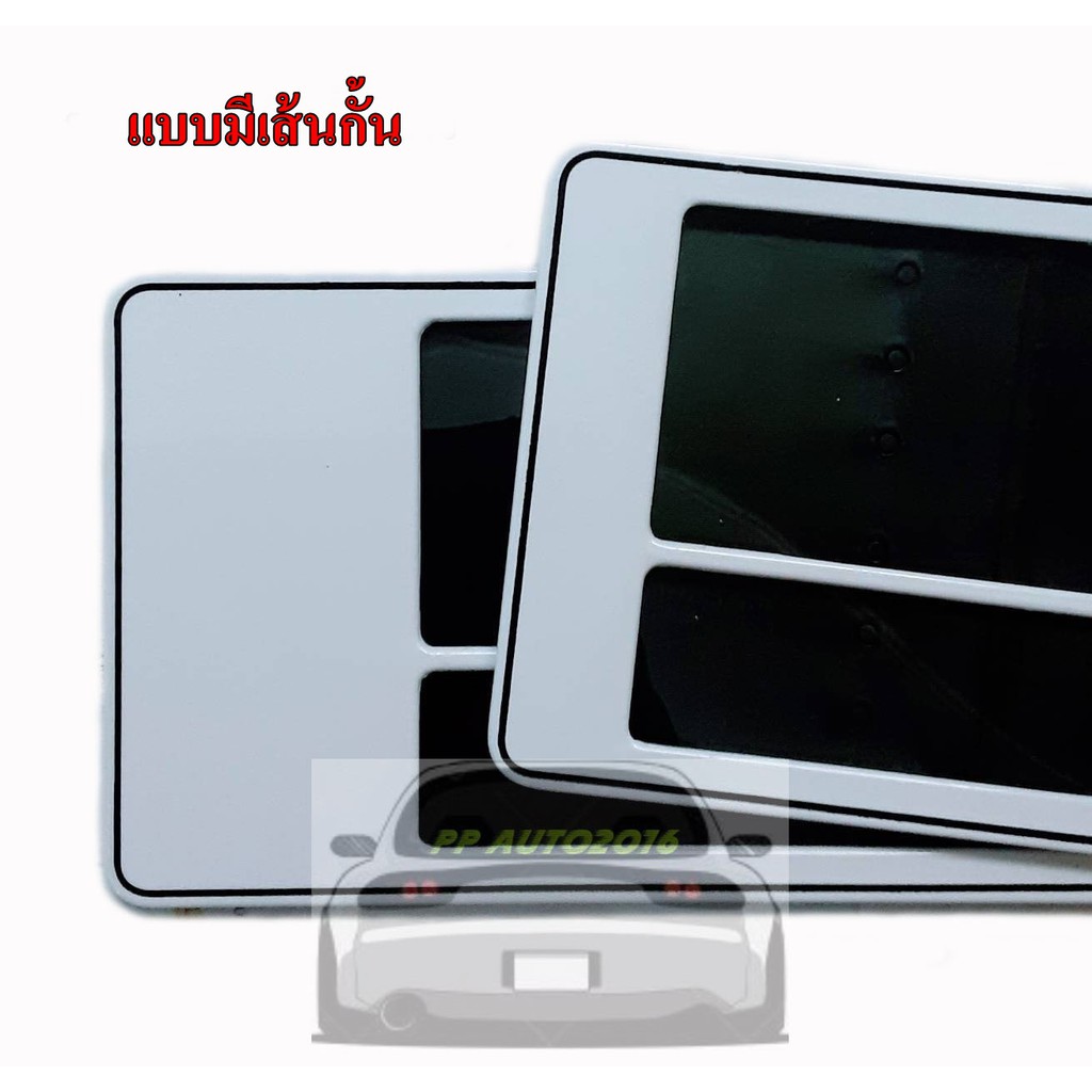 กรอบป้ายทะเบียนรถยนต์ กรอบป้ายกันน้ำพื้นขาวล้วนขอบเส้นดำ มีเส้นกั้น มี3ขนาดไห้เลือก สั้นสั้น/สั้นยาวและยาวยาว