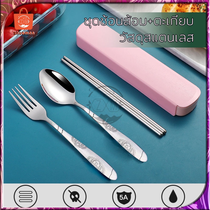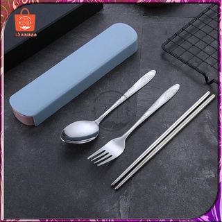 ชุดช้อนส้อมสแตนเลส ชุดช้อนแบบพกพา กล่องใส่ช้อน สะดวกต่อการพกพา จัดเก็บอยู่ในกล่องอย่างดี ล้างทำคว ามสะอาดง่าย