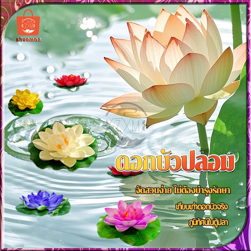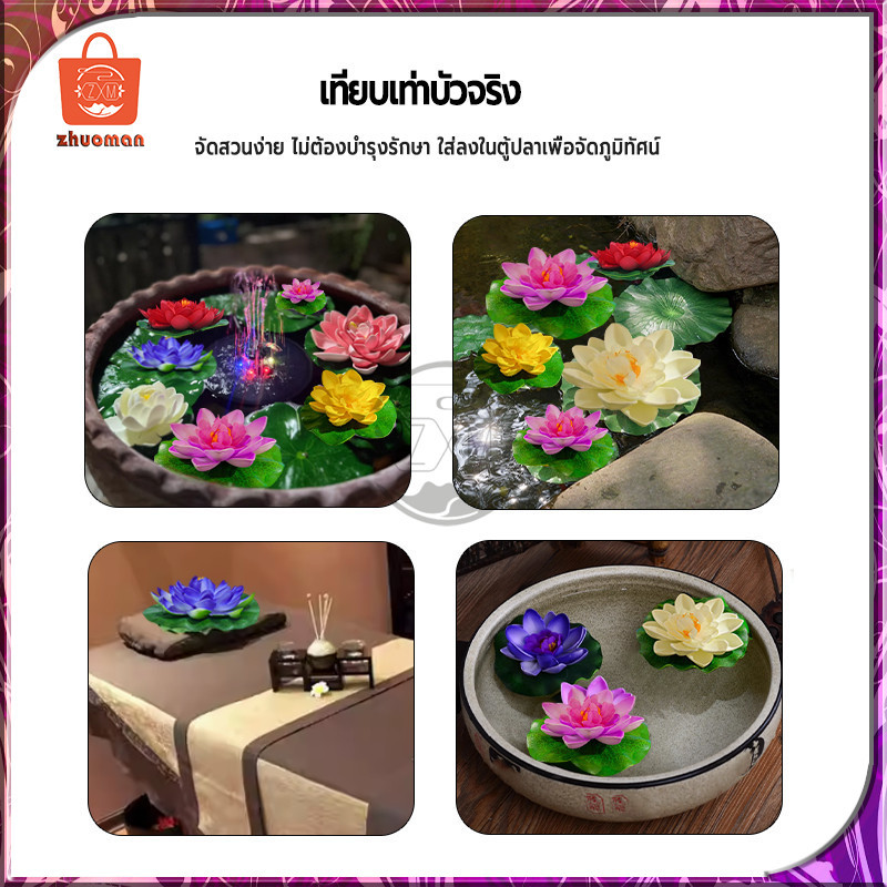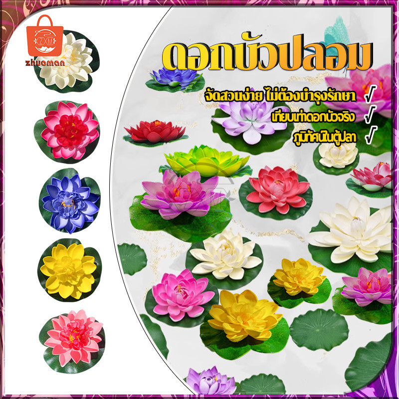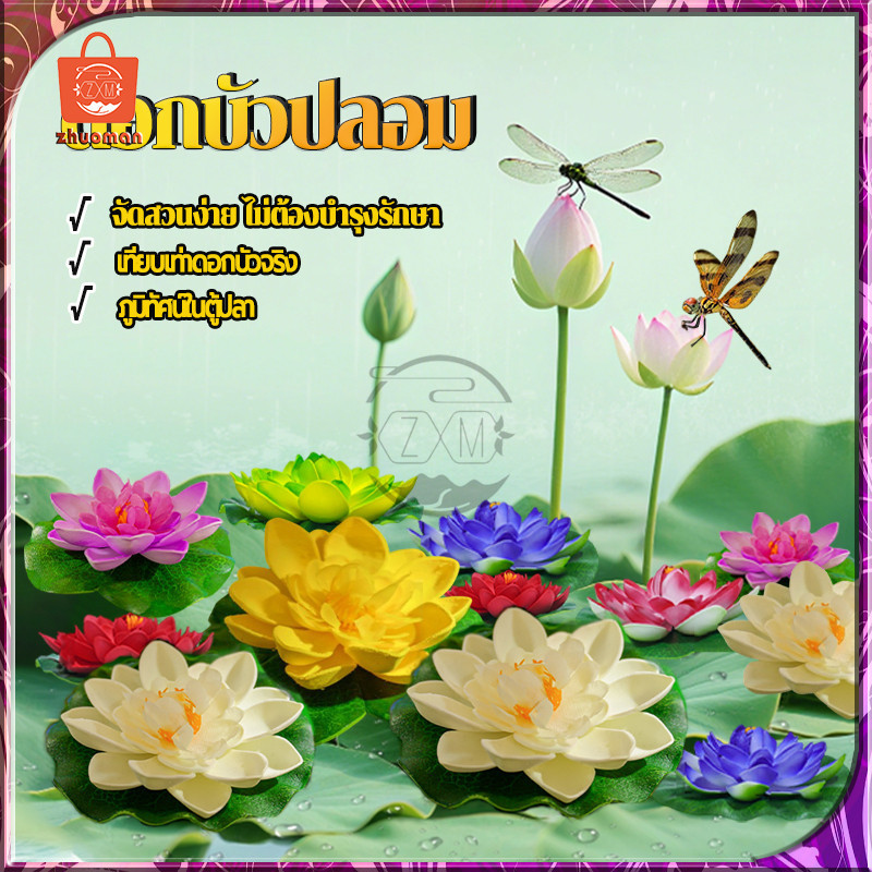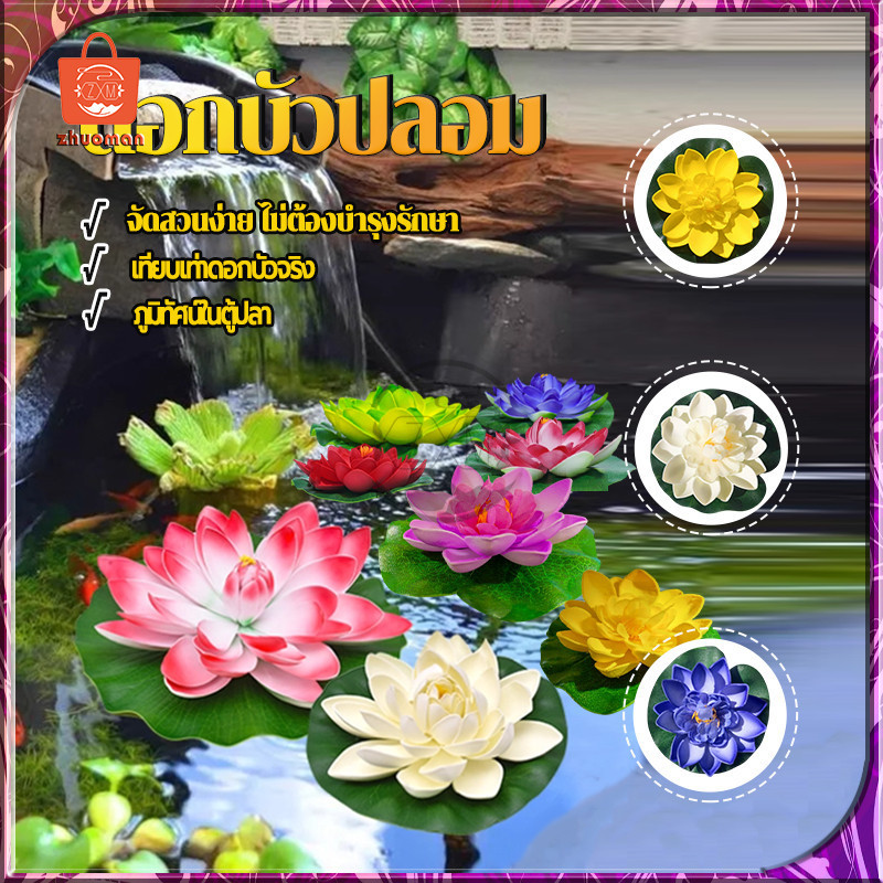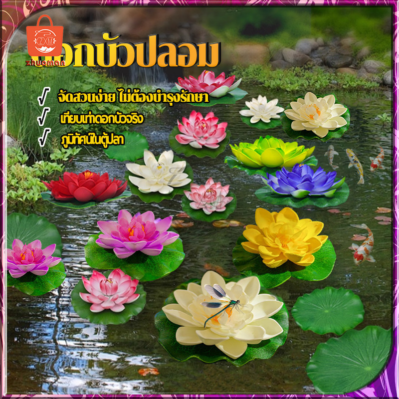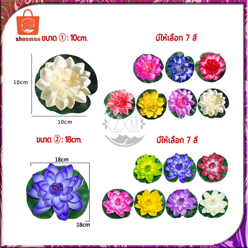 ดอกบัวลอยน้ำ ดอกบัวปลอม 10cm/18cm ดอกบัว ดอกบัวมงคล ใช้ตกแต่งบ่อน้ำ ใบบัวเหมือนจริง ตกแต่งสวน เสริมฮวงจุ้ย สระ 8สี