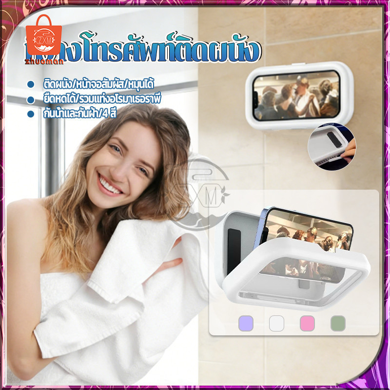 ที่วางโทรศัพท์ติดผนัง ที่วางโทรศัพท์ในห้องน้ํา ขาตั้งโทรศัพท์ กันน้ํา สามารถทัชสกรีนจากด้านนอกได้เลย แขวนได้ ไม่ต้องเจาะ