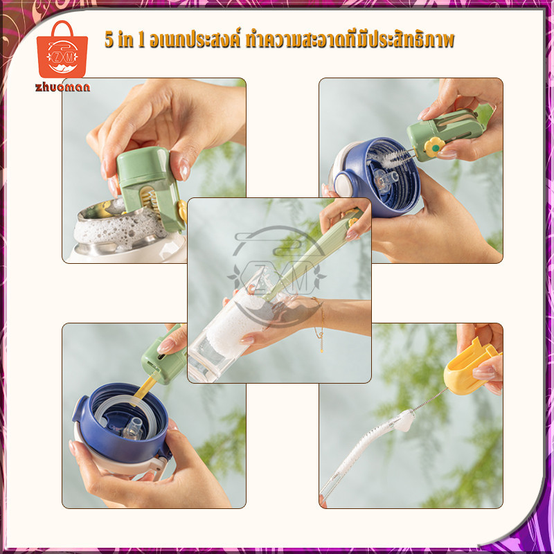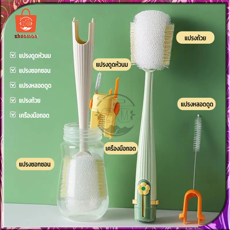 แปรงขวด แปรงแก้ว5in1 แปรงล้างขวดน้ำ แปรงล้างแก้ว หัวแปรง ถอดได้ แปรงดูดหัวนม,แปรงซอกซอน,แปรงหลอดดูด,แปรงถ้วย