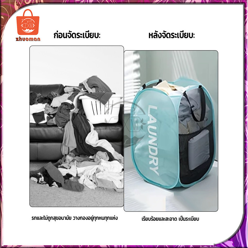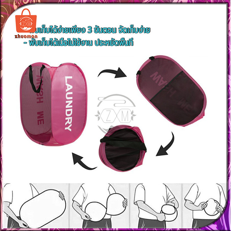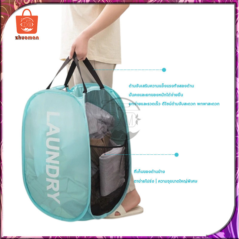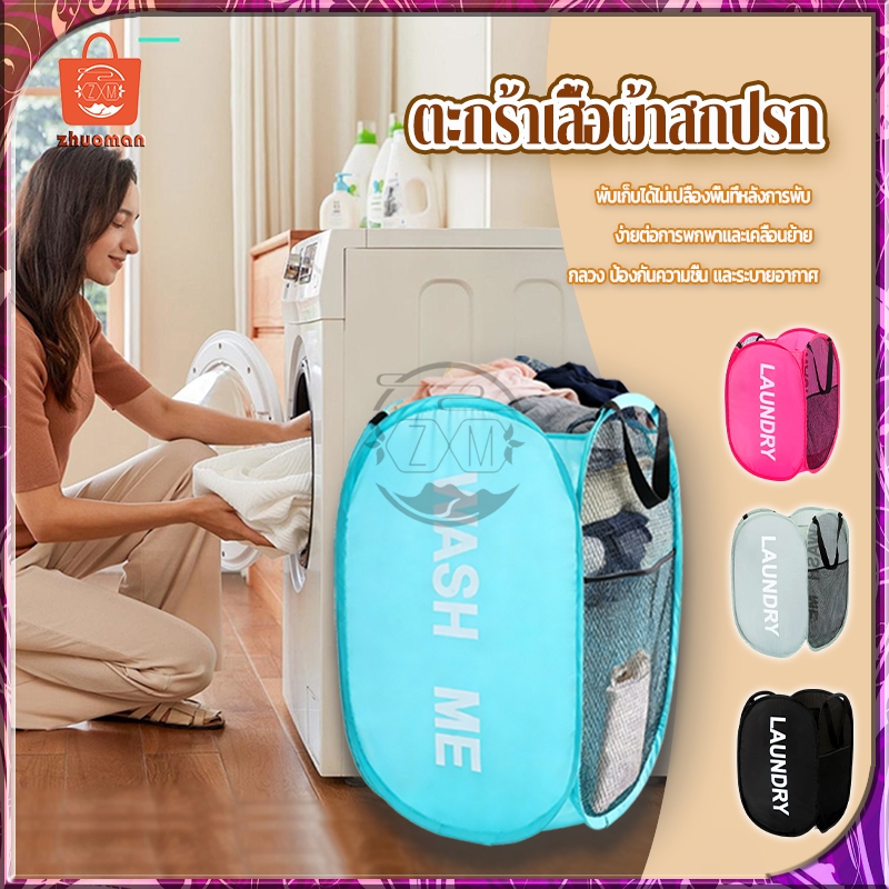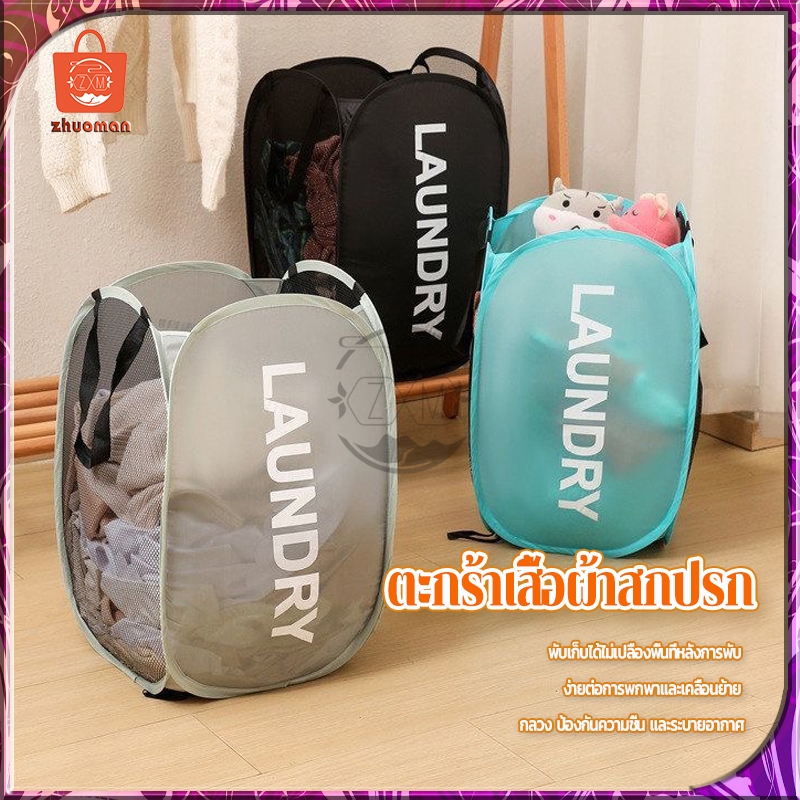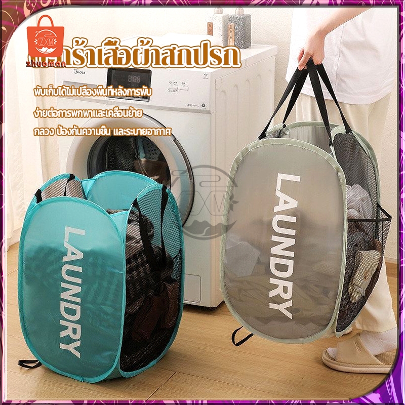 ตะกร้าใส่ผ้าพับได้ ตระกร้าผ้า ตะกร้าเก็บของ ตะกร้าผ้า แบบป๊อปอัพ ตะกร้าตาข่ายมัลติฟังก์ชั่น ระบายอากาศได้ดีและไม่ขึ้นรา
