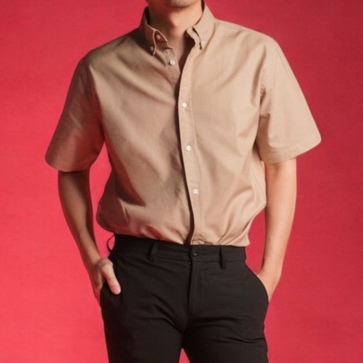 era-won เสื้อเชิ้ต รุ่น OXFORD SHORT-SLEEVED SHIRT สี BEIGE