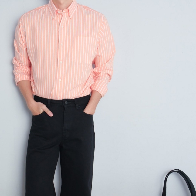 era-won Premium Quality เสื้อเชิ้ต คอปก Dress shirt Regular Shirt แขนยาว สี Orange