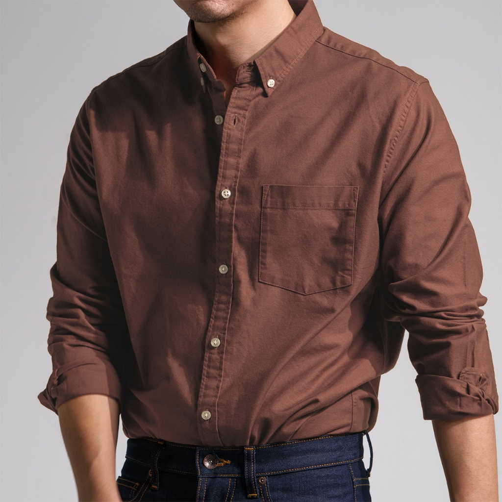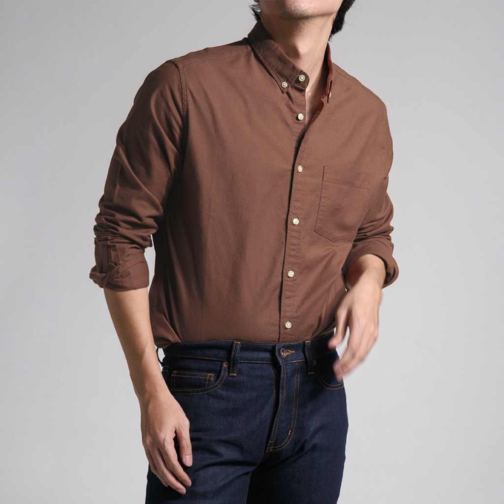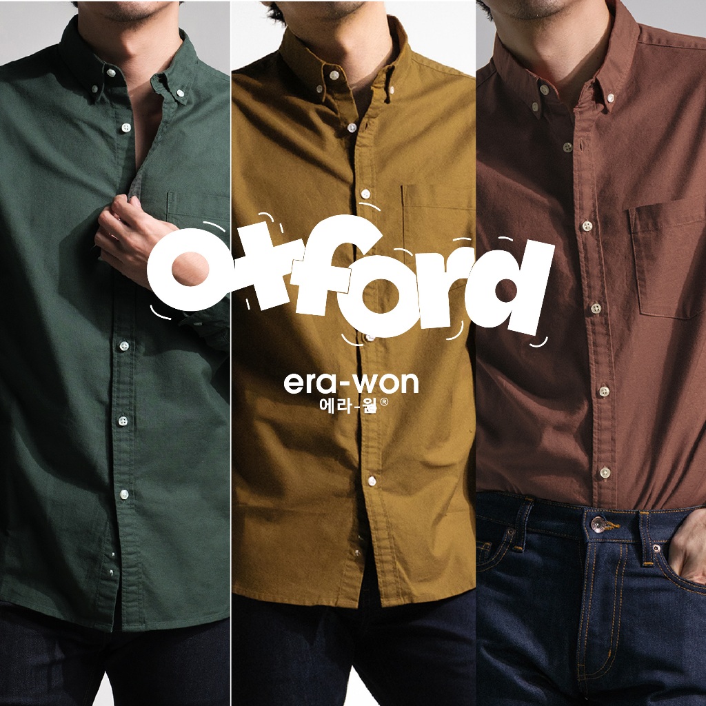 era-won เสื้อเชิ้ต ทรงปกติ Oxford Shirt แขนยาว คอปก 3 สี (น้ำตาล เขียว มัสตาด)