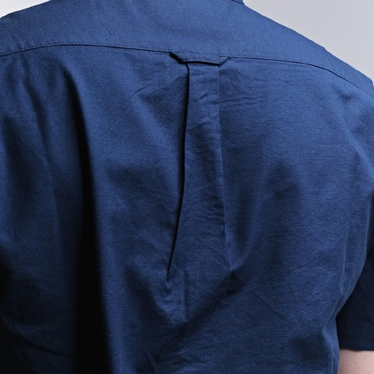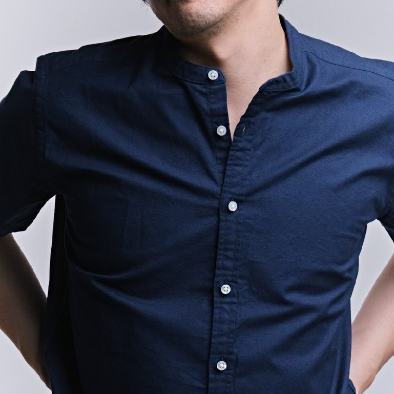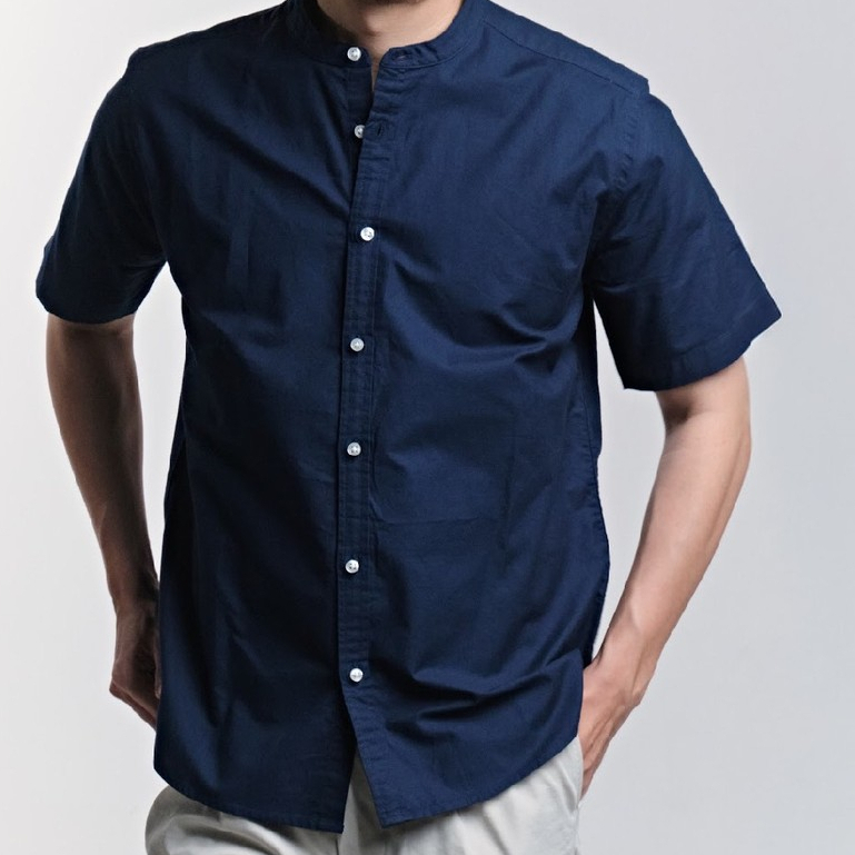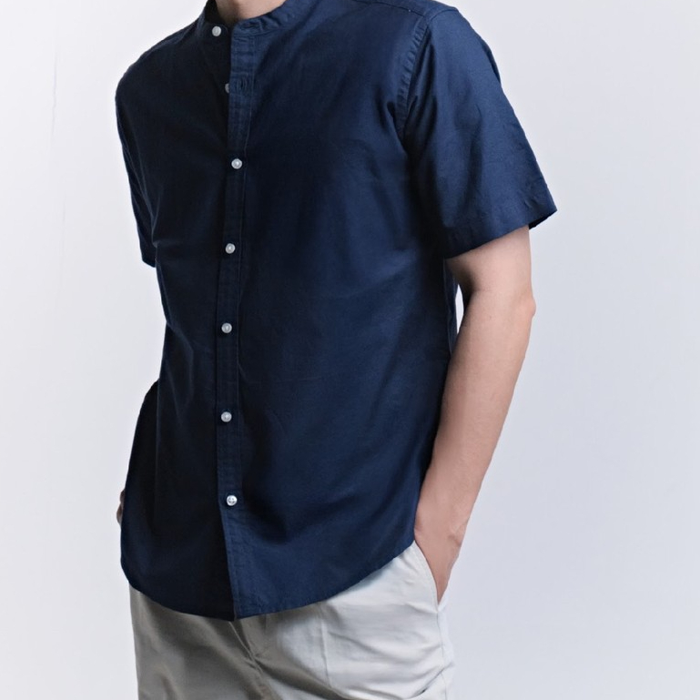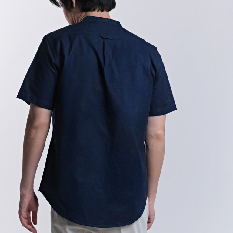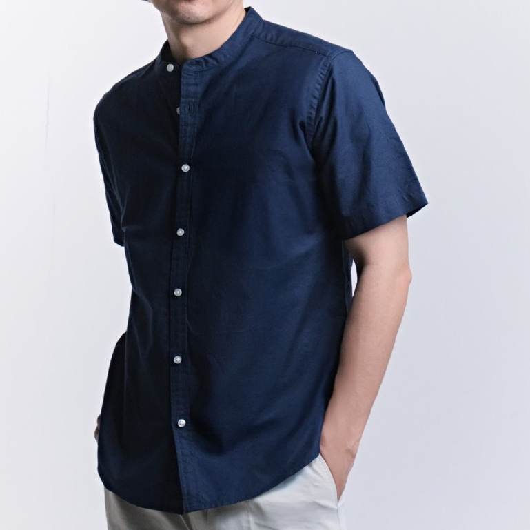 era-won เสื้อเชิ้ต คอจีน รุ่น OXFORD SHORT-SLEEVED MANDARIN COLLAR ทรง Regular สี Navy