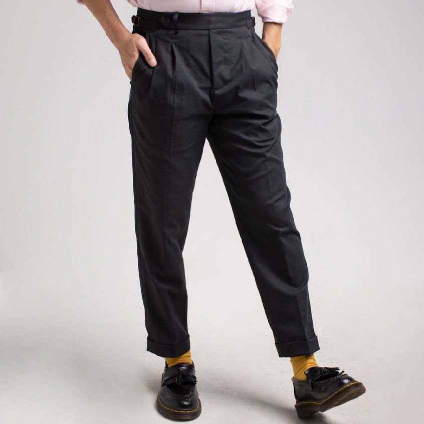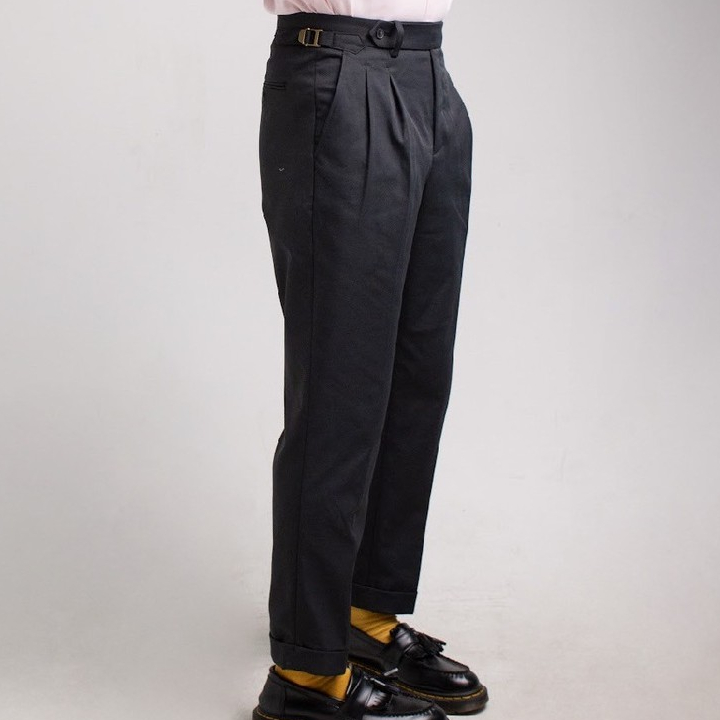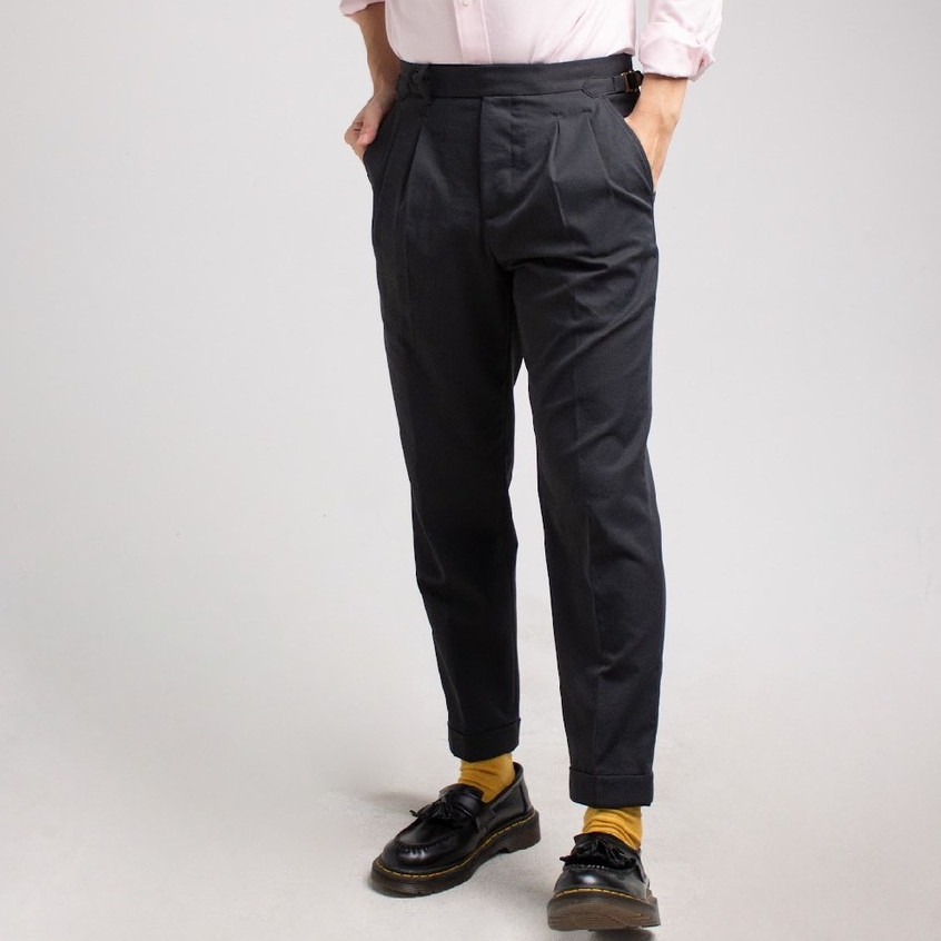 era-won กางเกงขายาว รุ่น DOUBLE BELTS TROUSERS GOLDEN HOOKS มีเข็มขัดด้านข้าง ทรงกระบอกตรง สี Standard black