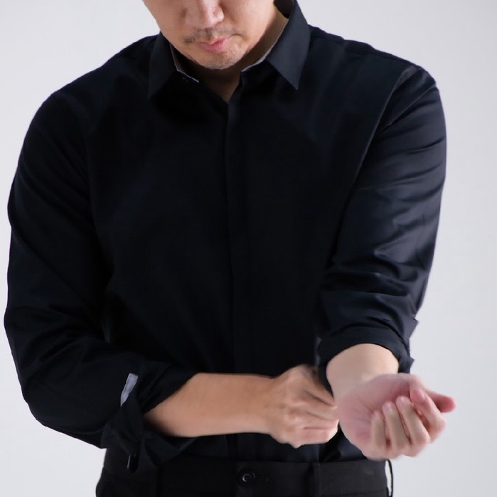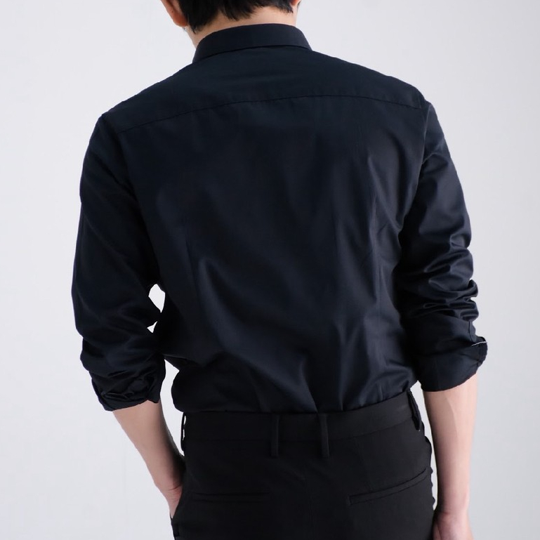 era-won เสื้อเชิ้ตรุ่น QUIET LUXURY SHIRT LONG MEN SLIM HIDDEN BUTTON COLLAR ทรง DRESS SHIRT สี Black