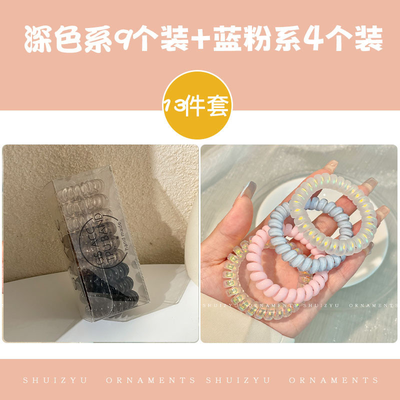 ชุด 13 แฟชั่นเกาหลีสีโทรศัพท์สายผมห่วงผู้หญิงผูกผมหนังปกผมเชือกอุปกรณ์ผม