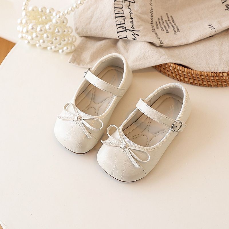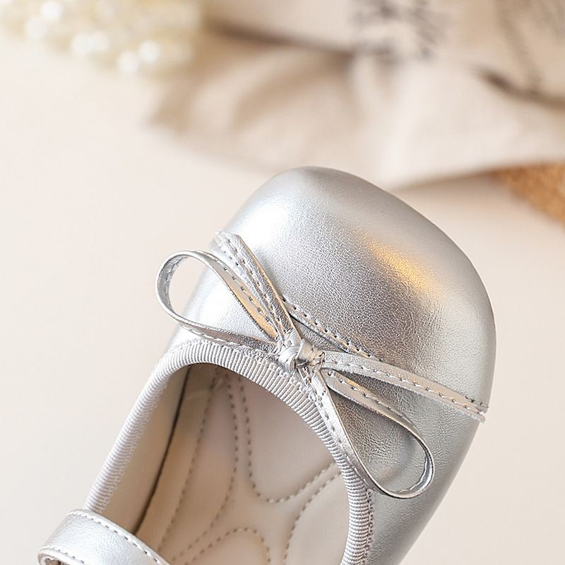 สาวรองเท้าหนังลื่นนุ่มแต่เพียงผู้เดียวเด็กเต้นรําประสิทธิภาพรองเท้าสีดําเคลือบ2025เด็กใหม่รองเท้าแบนกับโบว์ที่เรียบง่าย