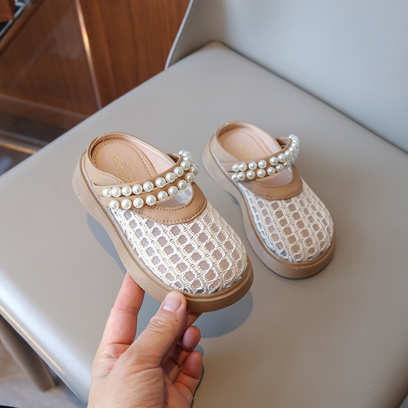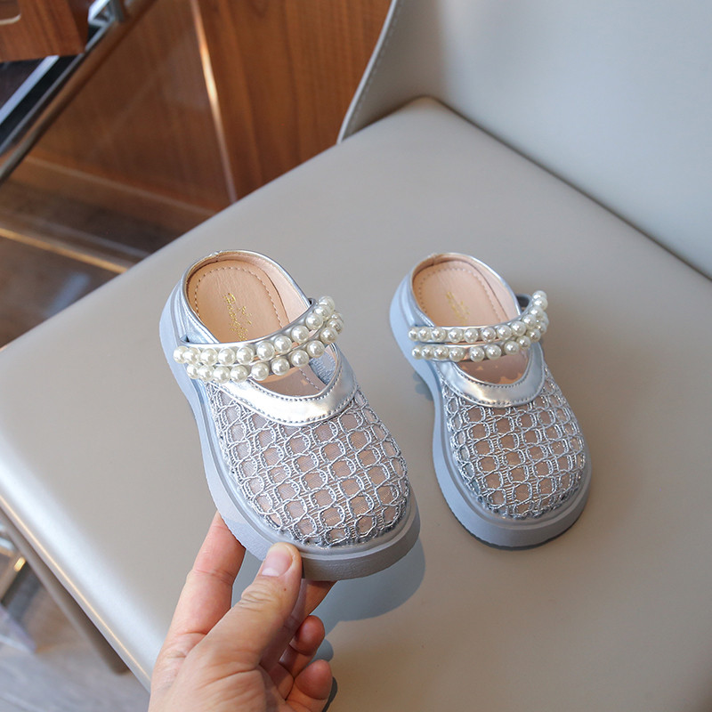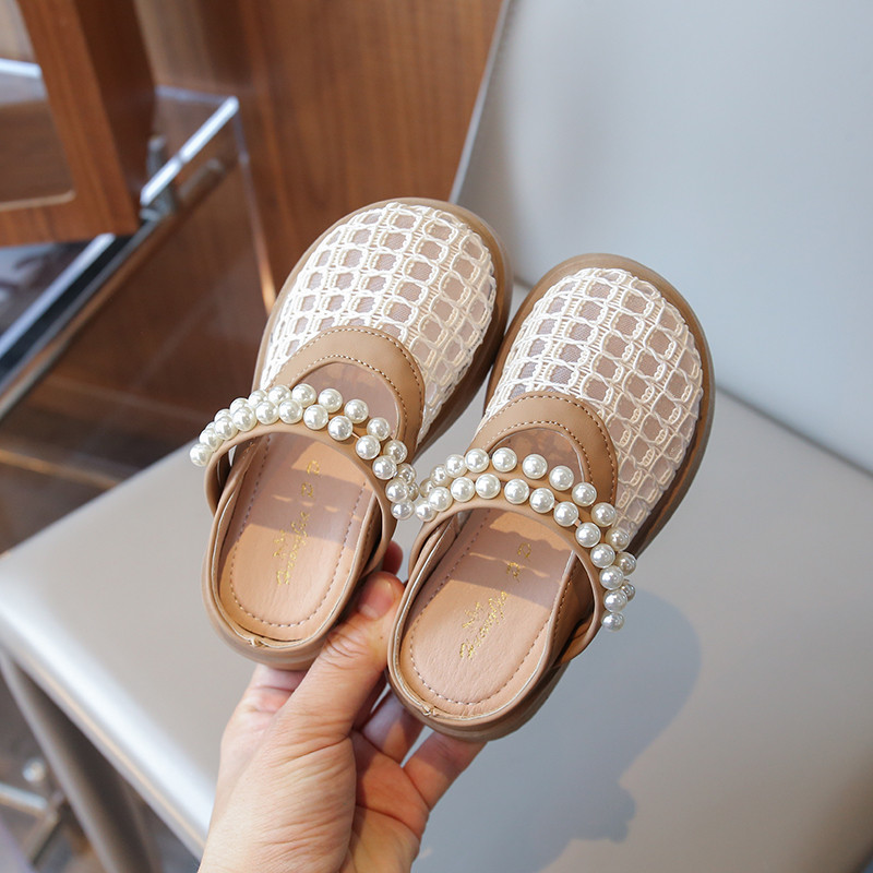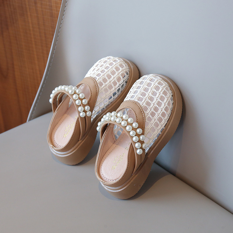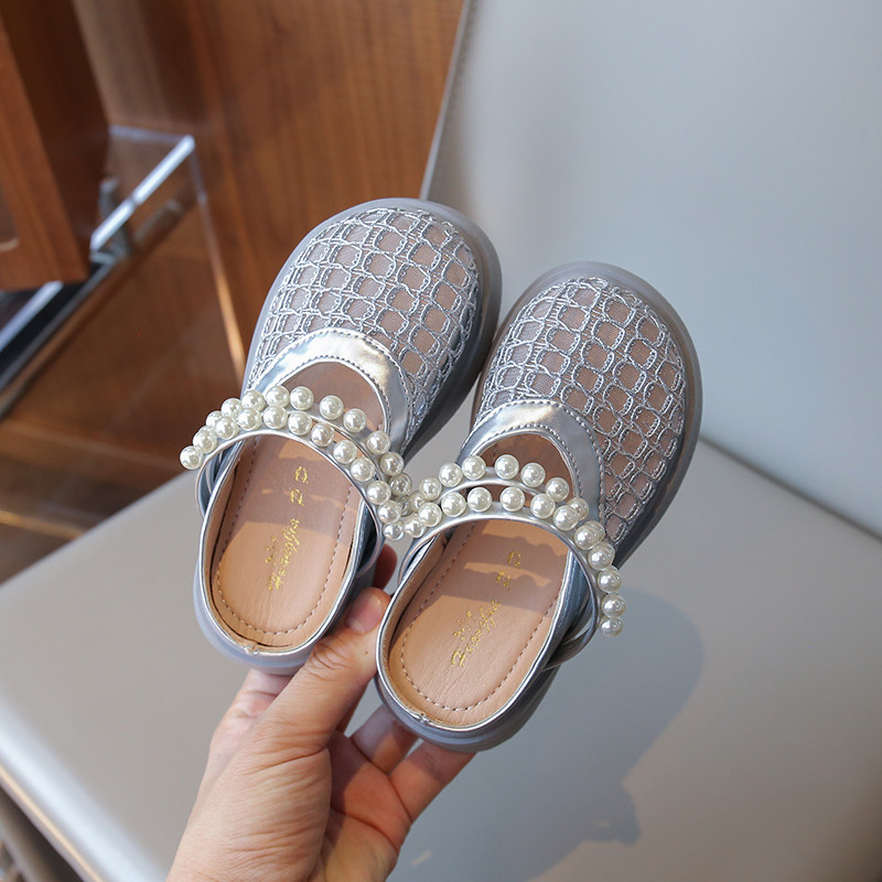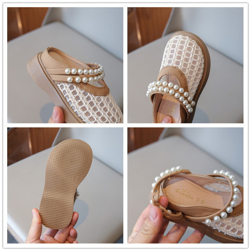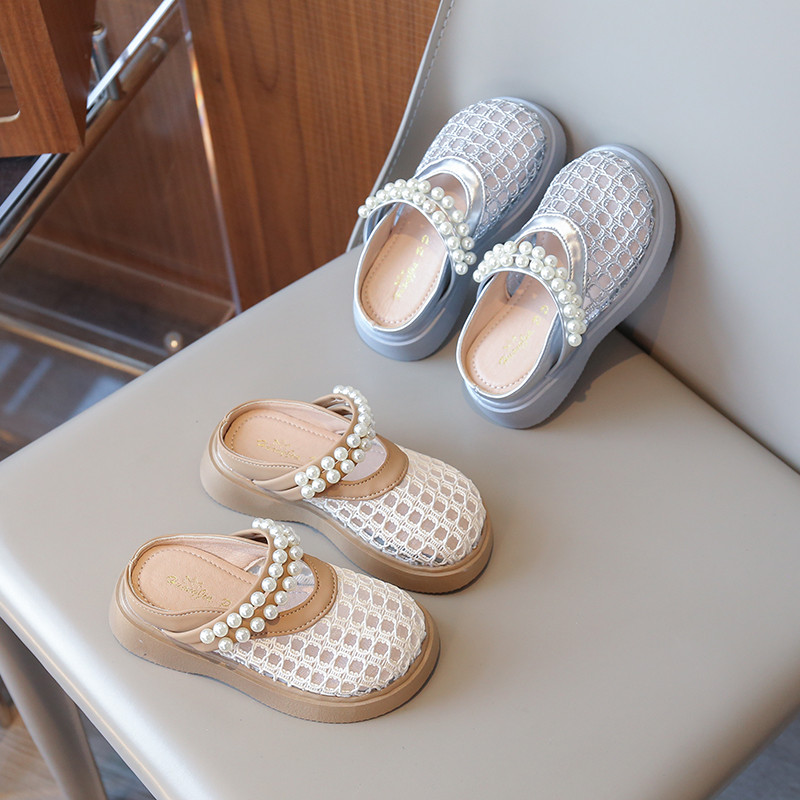 รองเท้าแตะตาข่ายกลวงสำหรับเด็กหญิง ปี 2026 มาใหม่ ดีไซน์ลูกปัดเงาวางแบบพิเศษ พื้นนุ่มสวมใส่ง่ายทุกวันกลางแจ้ง