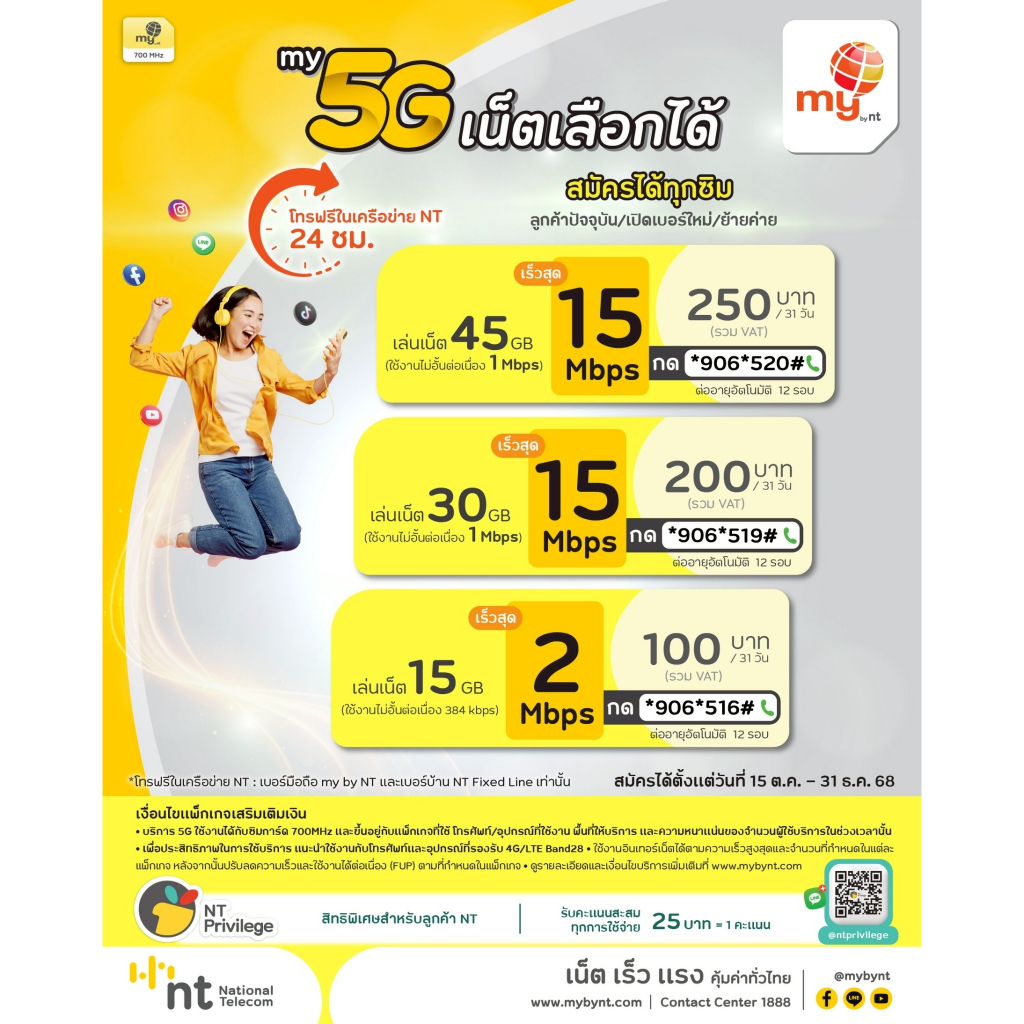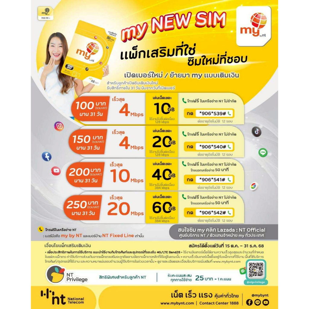 ซิมมาย My by NT แบบเติมเงิน 5G/3G/4G