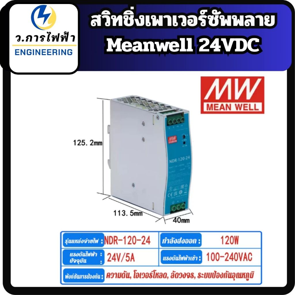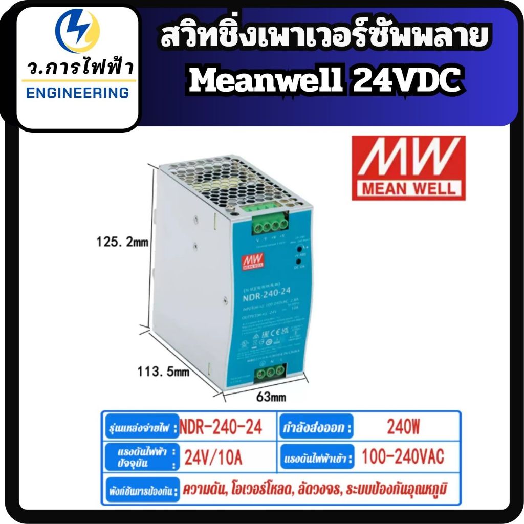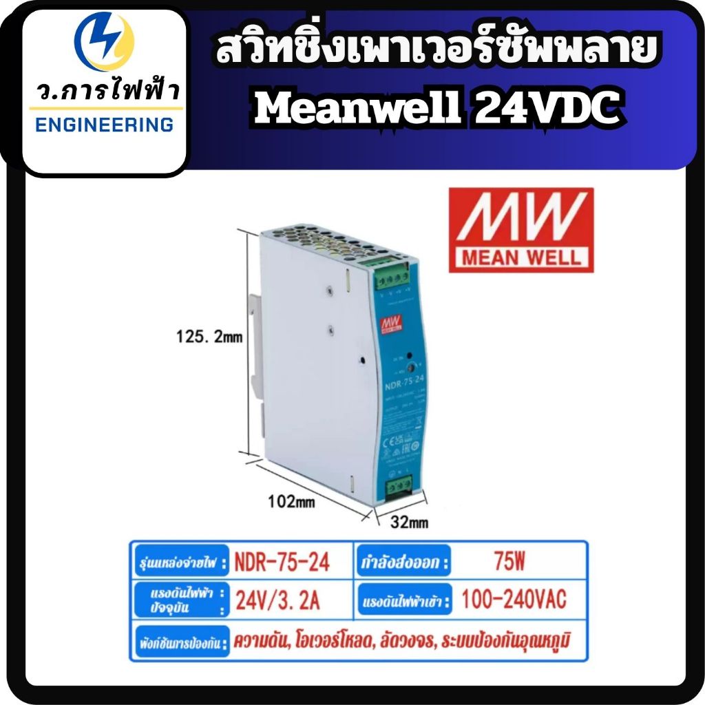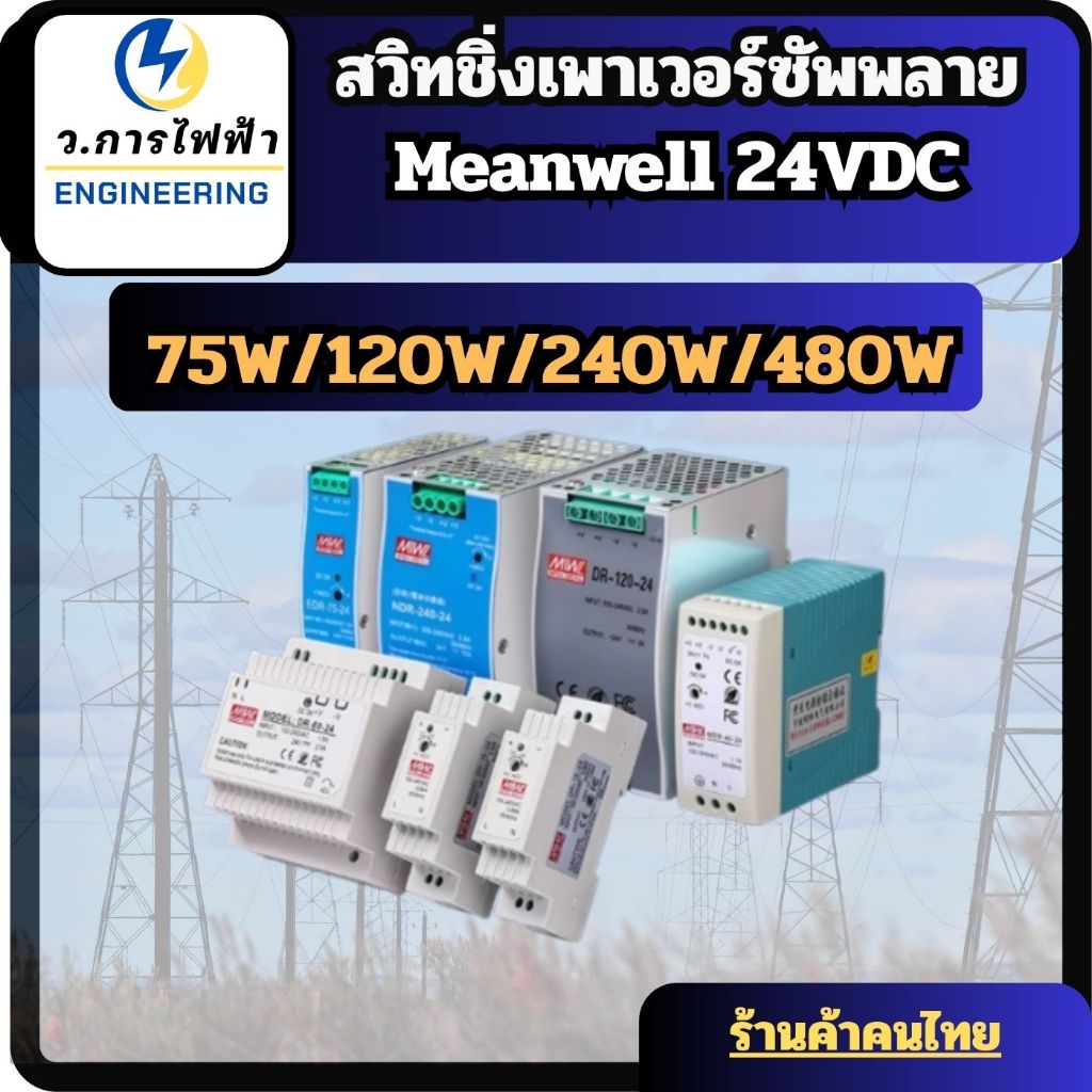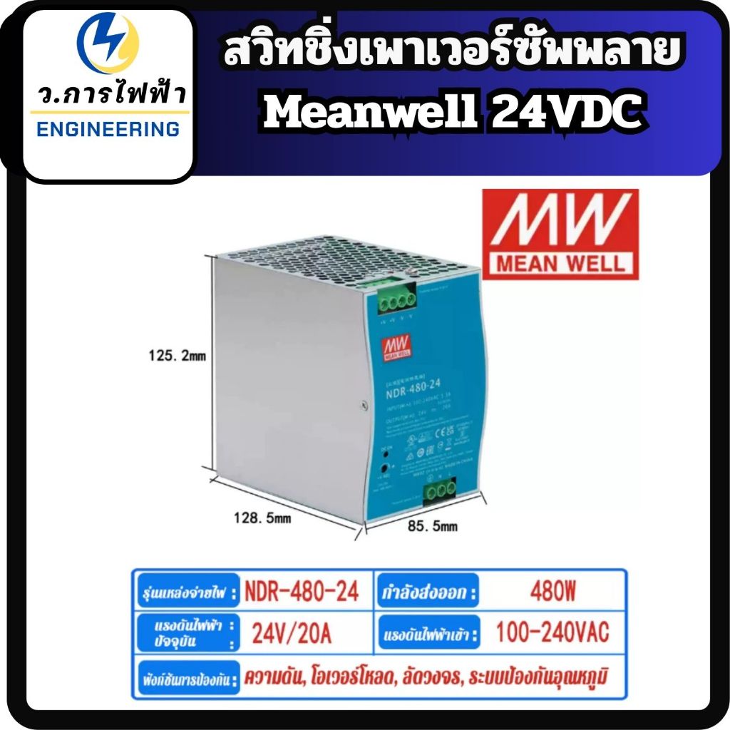 Meanwell สวิทชิ่งเพาเวอร์ซัพพลาย 24V NDR-Series 75W/120W/240W/480W Input 220VAC