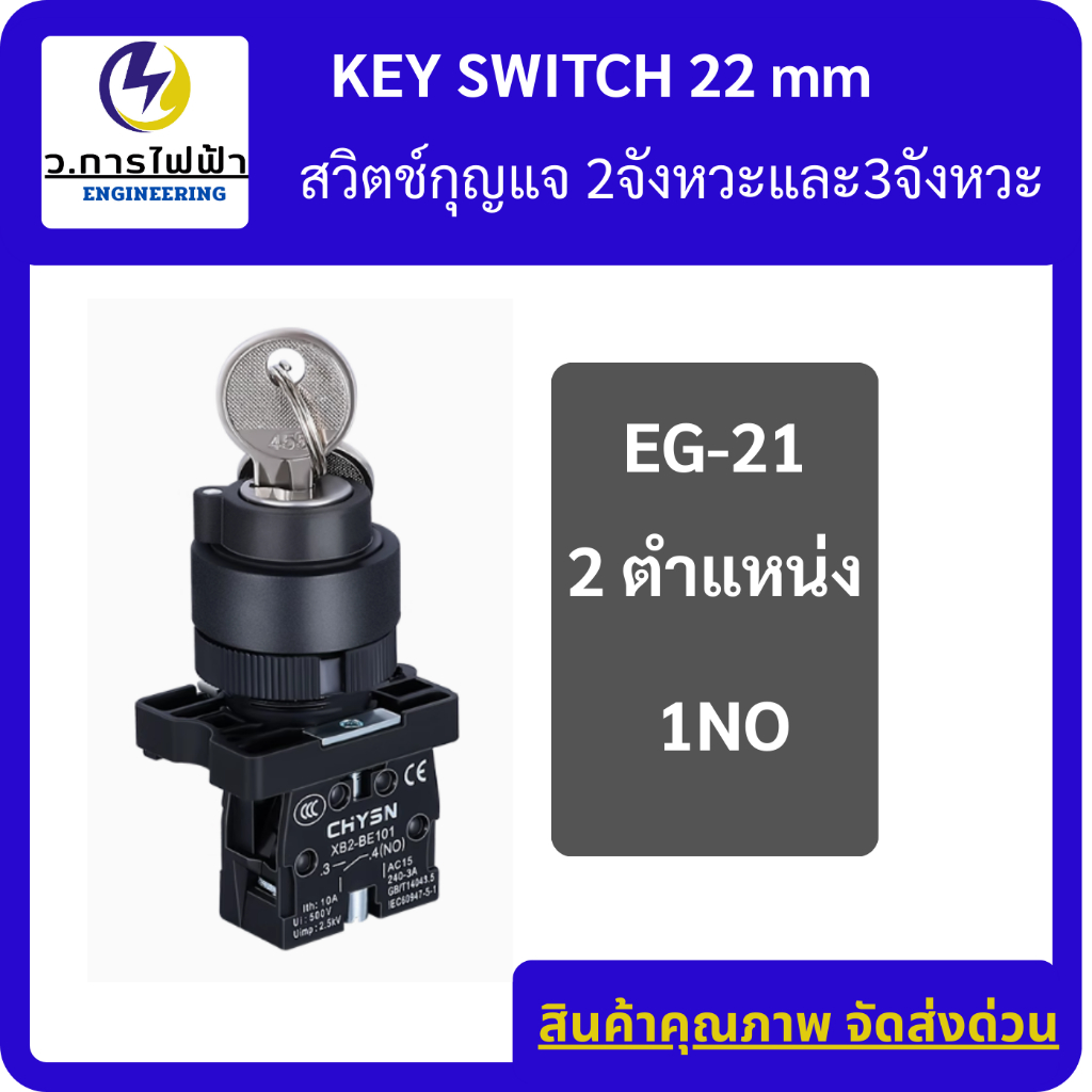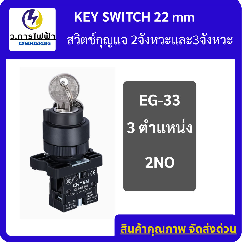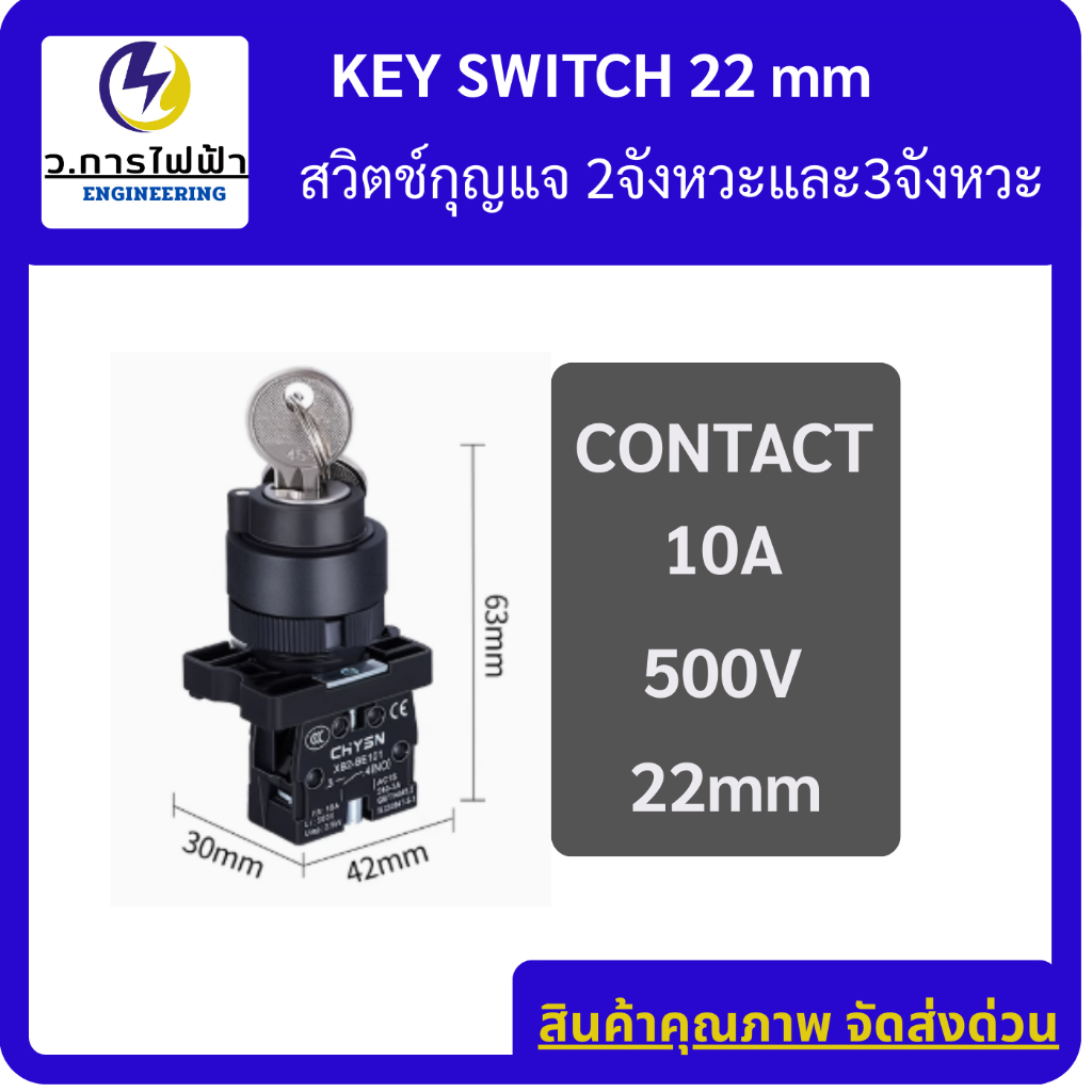 KEY SWITCH 2P/3P สวิตช์กุญแจ 2จังหวะและ3จังหวะ ขนาด 22มิล