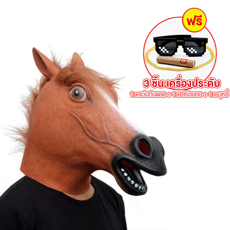 【ฟรีอุปกรณ์เสริม】 หน้ากากหัวม้า หน้ากากม้า หน้ากากคอสเพลย์ อุปกรณ์ประกอบฉากปาร์ตี้ วันฮาโลวีนแต่งตัว 2 สี