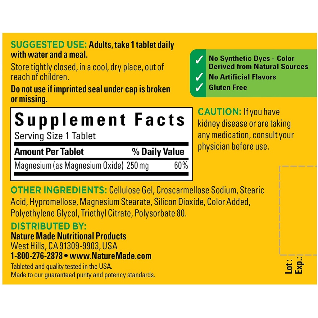 [Nature Made] Magnesium 250 mg 100 Tablets แมกนีเซียม