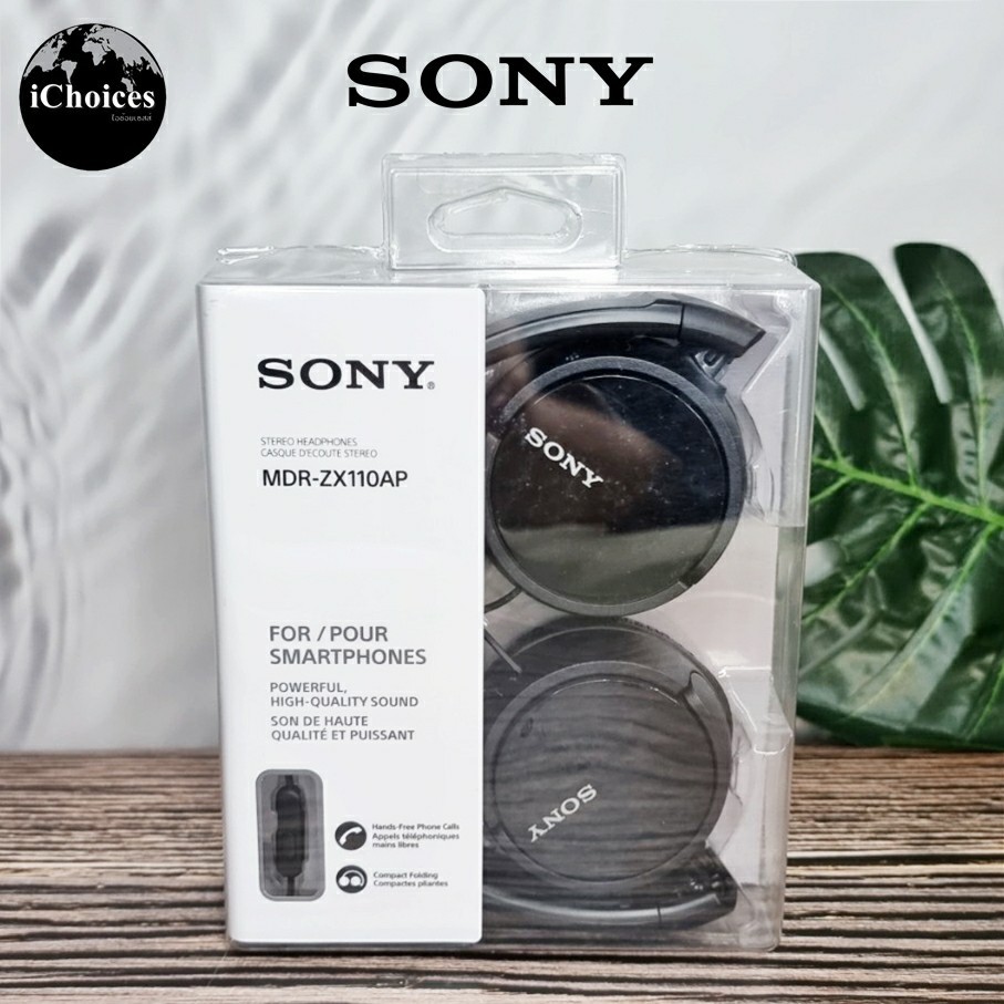 โซนี่ หูฟังแบบครอบหู มีสาย พร้อมไมโครโฟน Sony® ZX Series Wired On-Ear Headphones with Mic Black MDR-ZX110AP