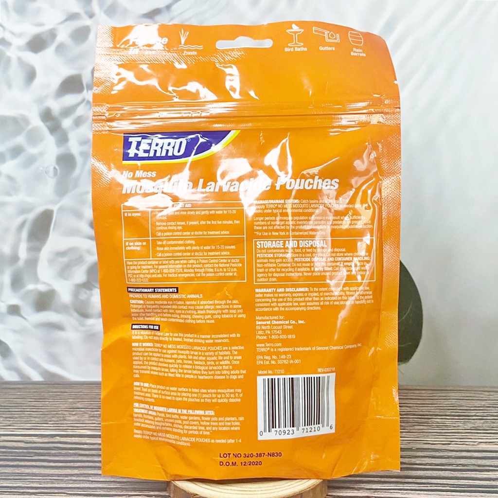 [Terro] T1210 No Mess Mosquito Larvacide Pouches 10 Pouches Included ผลิตภัณฑ์ กำจัดลูกน้ำยุงลาย ในน้ำนิ่ง