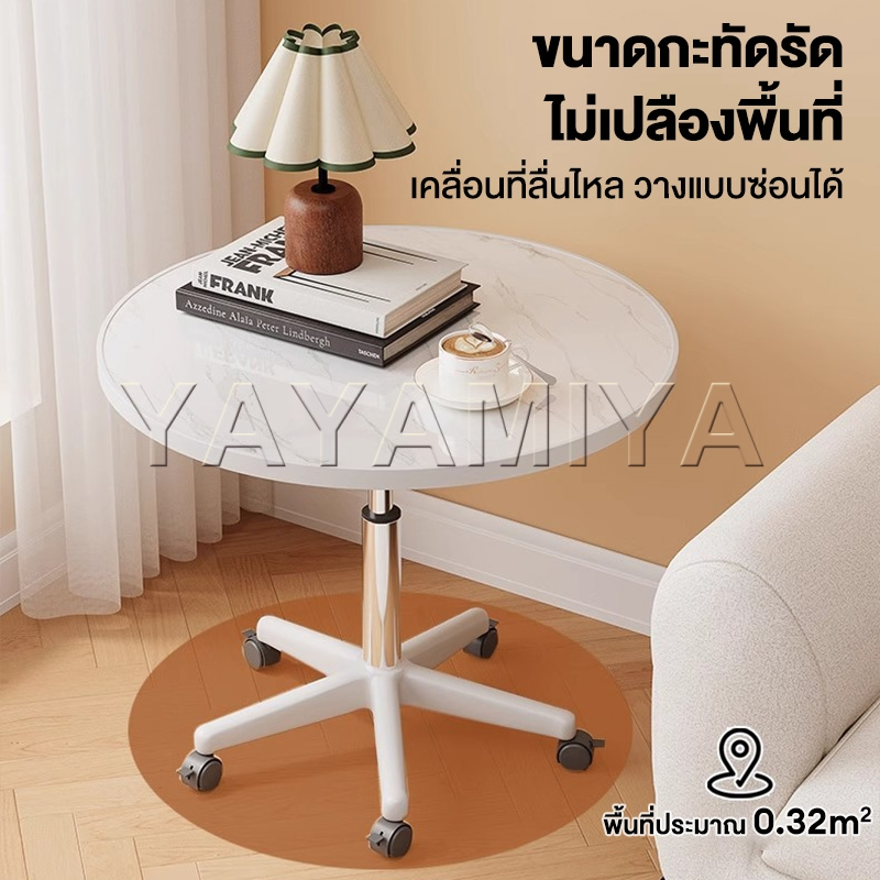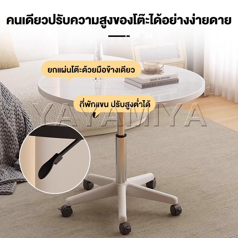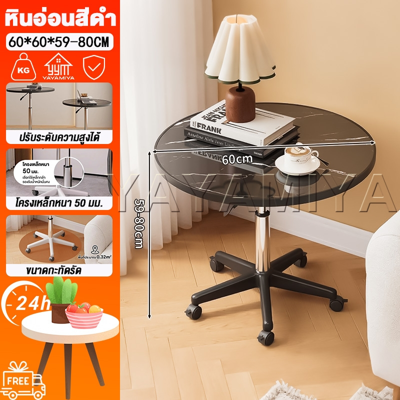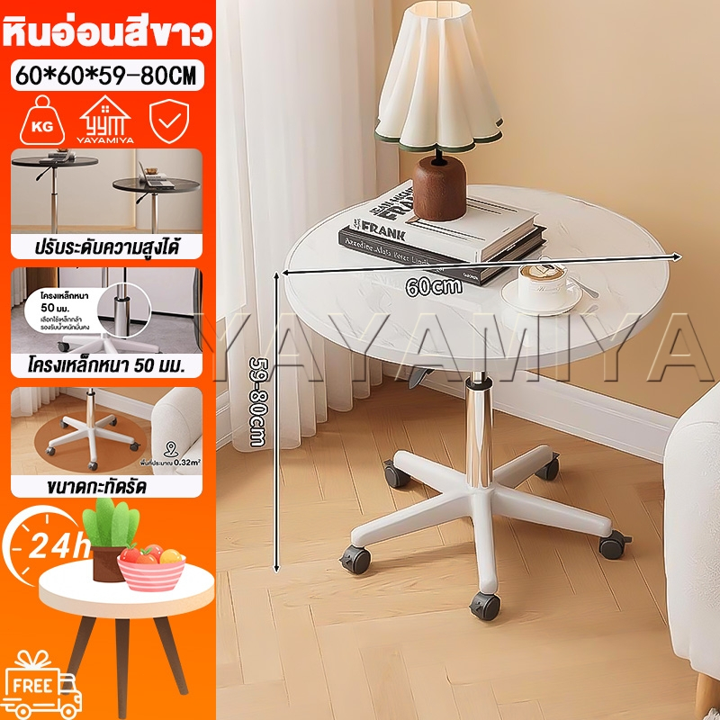 YYM☕【สามารถยกได้】โต๊ะกลางโซฟา 60*60*59-80CM โต๊ะกลาง โต๊ะกลม โต๊ะทานอาหารหมุนหนา มีล้อเคลื่อนไหว
