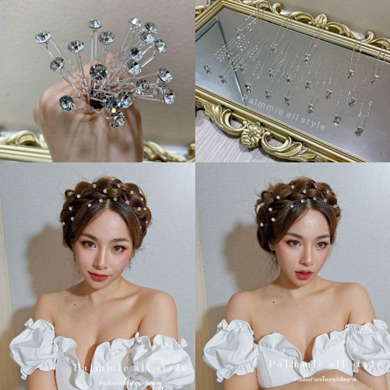 ปิ่นปักผม เซ็ต 20 ชิ้น เป็นเพชร Crystal ปักแบบกระจายทั่วหัวปังมาก