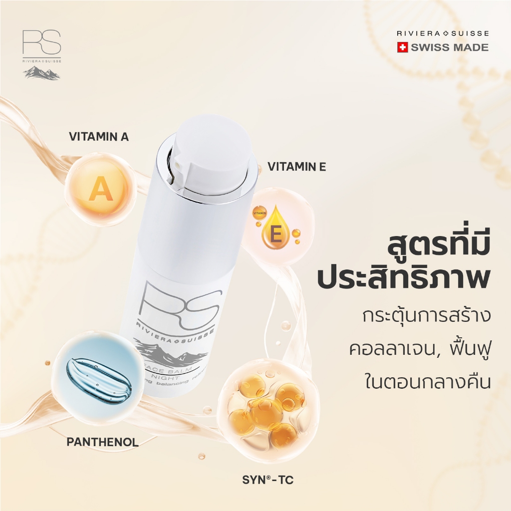 Riviera Suisse Face Balm Night ไนท์ครีมสูตรลดเลือนริ้วรอยและยกกระชับผิว 30/50ml
