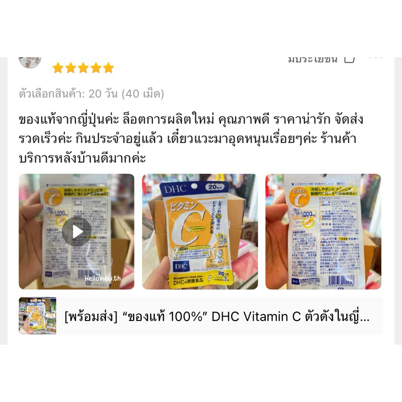[พร้อมส่ง] “ของแท้ 100%” DHC วิตามินซี ตัวดังจากญี่ปุ่น 🇯🇵 ผิวกระจ่างใส ลดจุดด่างดำ ป้องกันหวัด 🍊