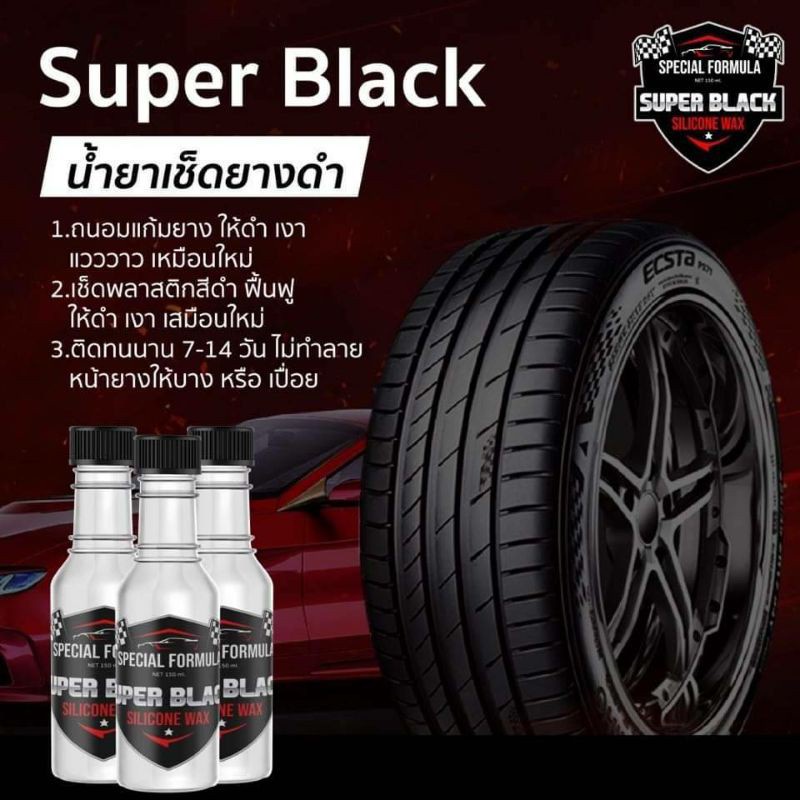 🔥 สินค้าขายดี !! 🔥 [แพ็ค 2 ขวด] Super Black โครตยางดำ น้ำยาเคลือบยางดำสูตรเข้มข้น ของแท้ กันน้ำ กันโคลน 100%