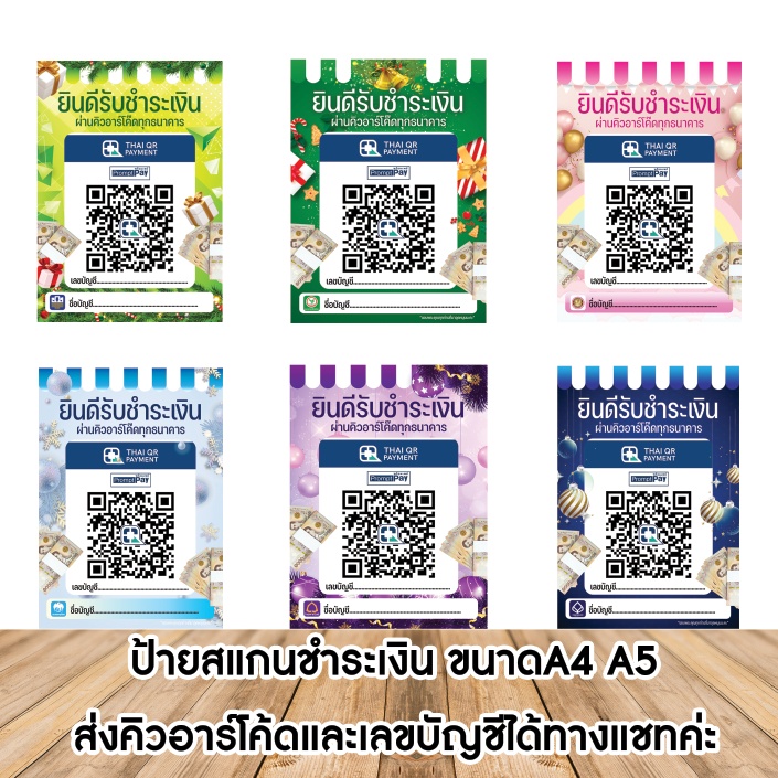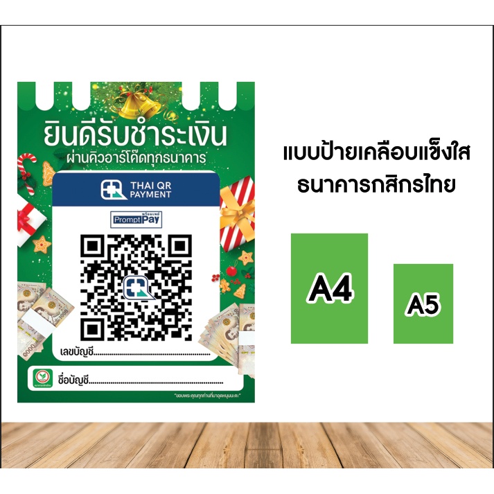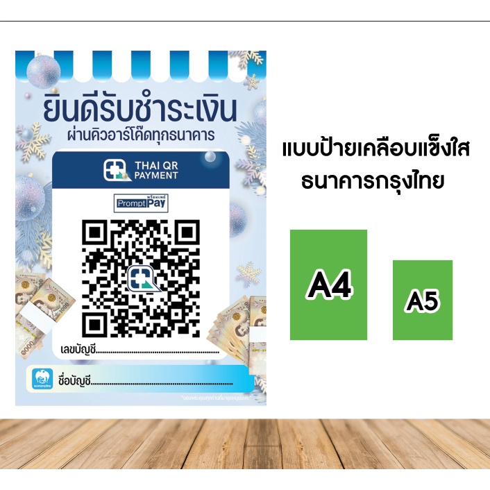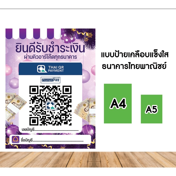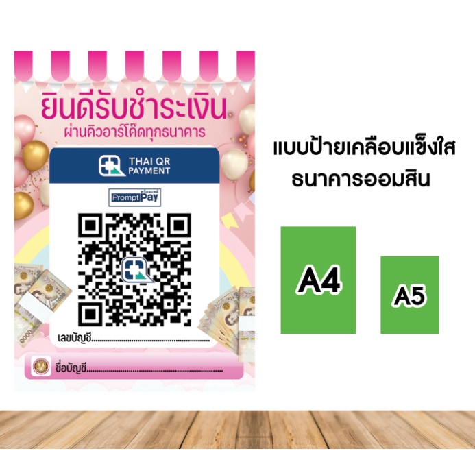 A013ป้ายสแกนคิวอาร์โค๊ด ขนาดA4(A5=2แผ่น) ตั้งโต๊ะ เคลือบใส กันน้ำ100% กันลาย100% ใช้งานได้ยาวนาน